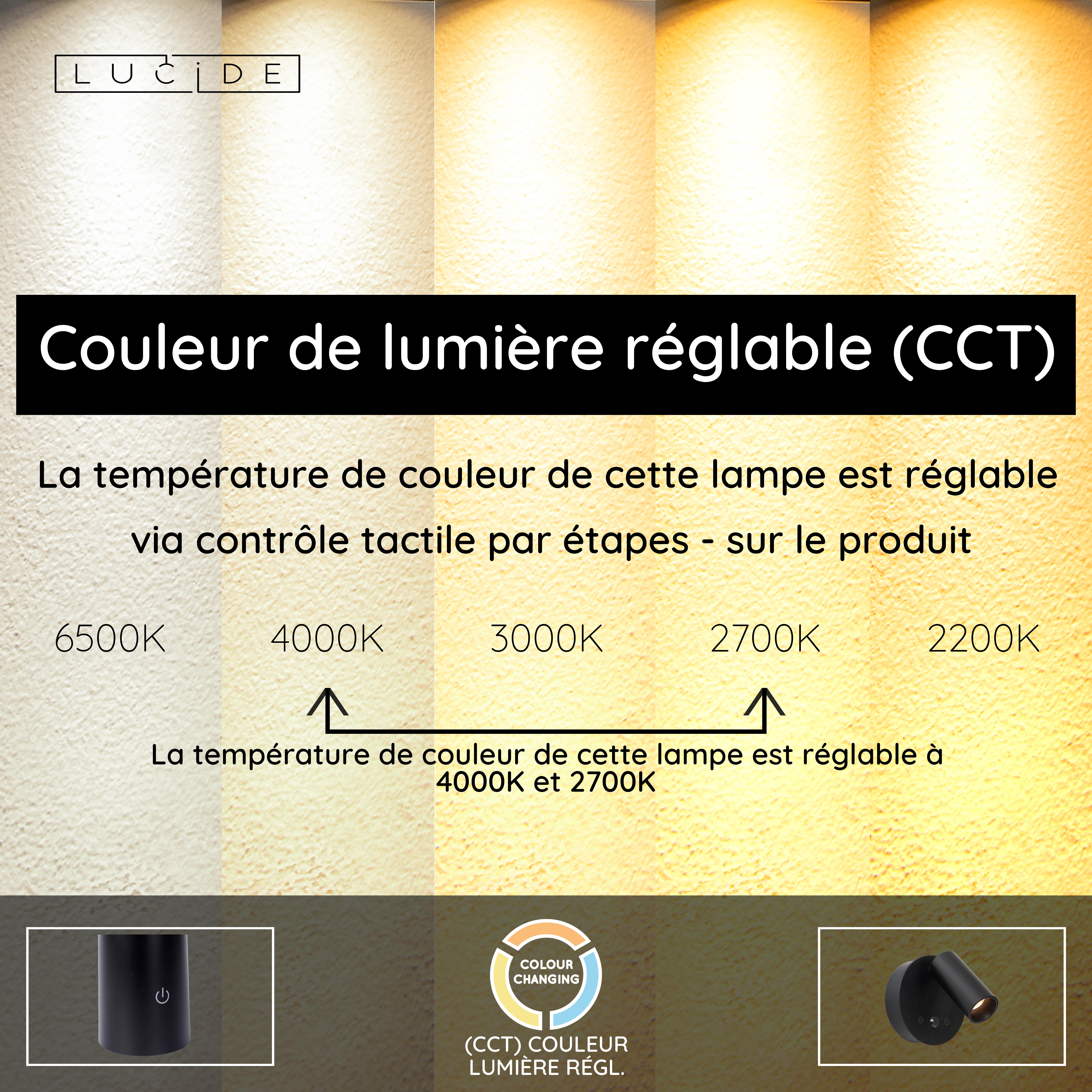 - Température de couleur réglable via contrôle tactile par étapes sur le produit (2700K-4000K)