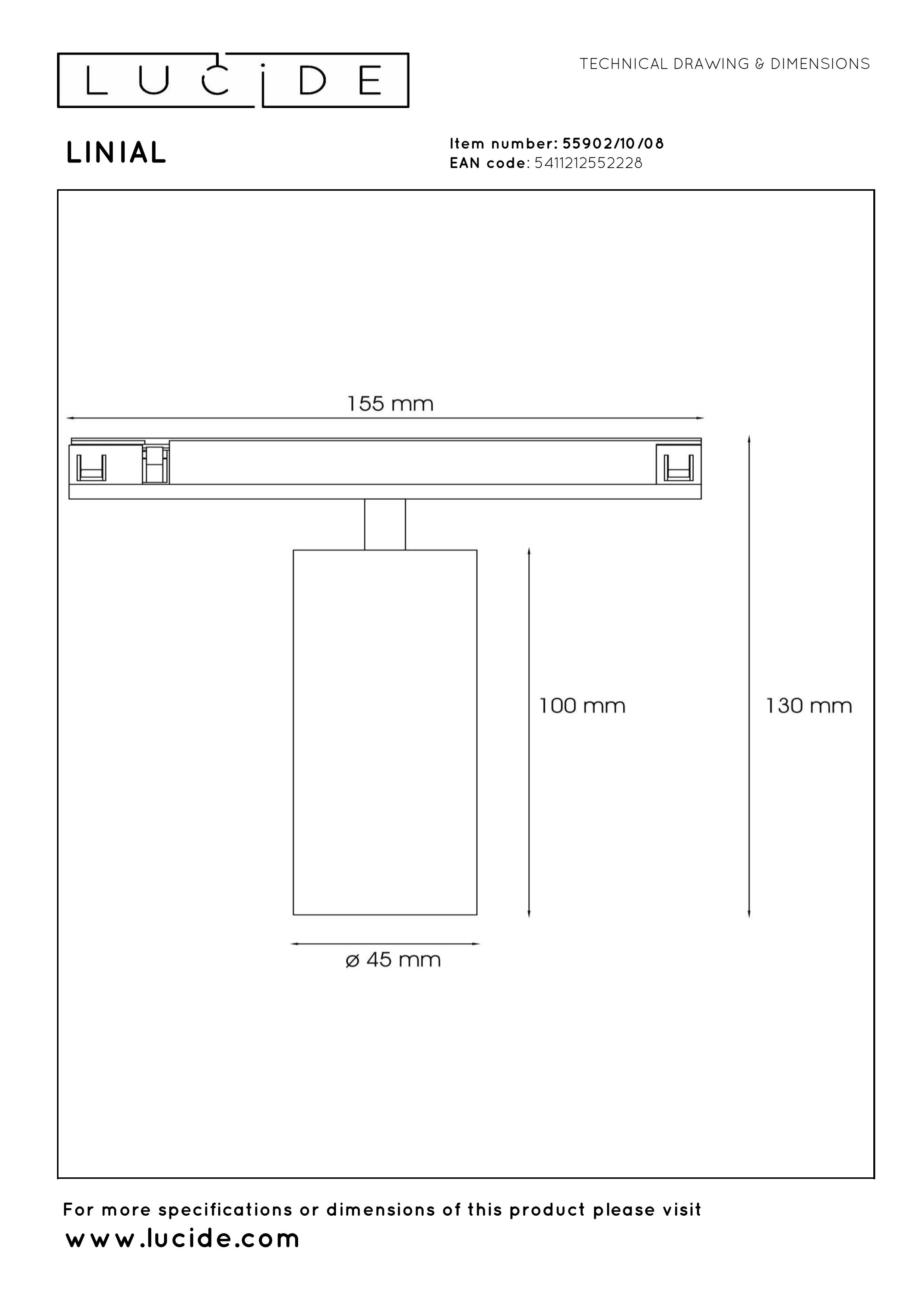 Lucide Premium LINIAL MOX Spot sur rail - Système de rail monophasé / Éclairage sur rail smart - 1xLED - Canon Fusil Mat