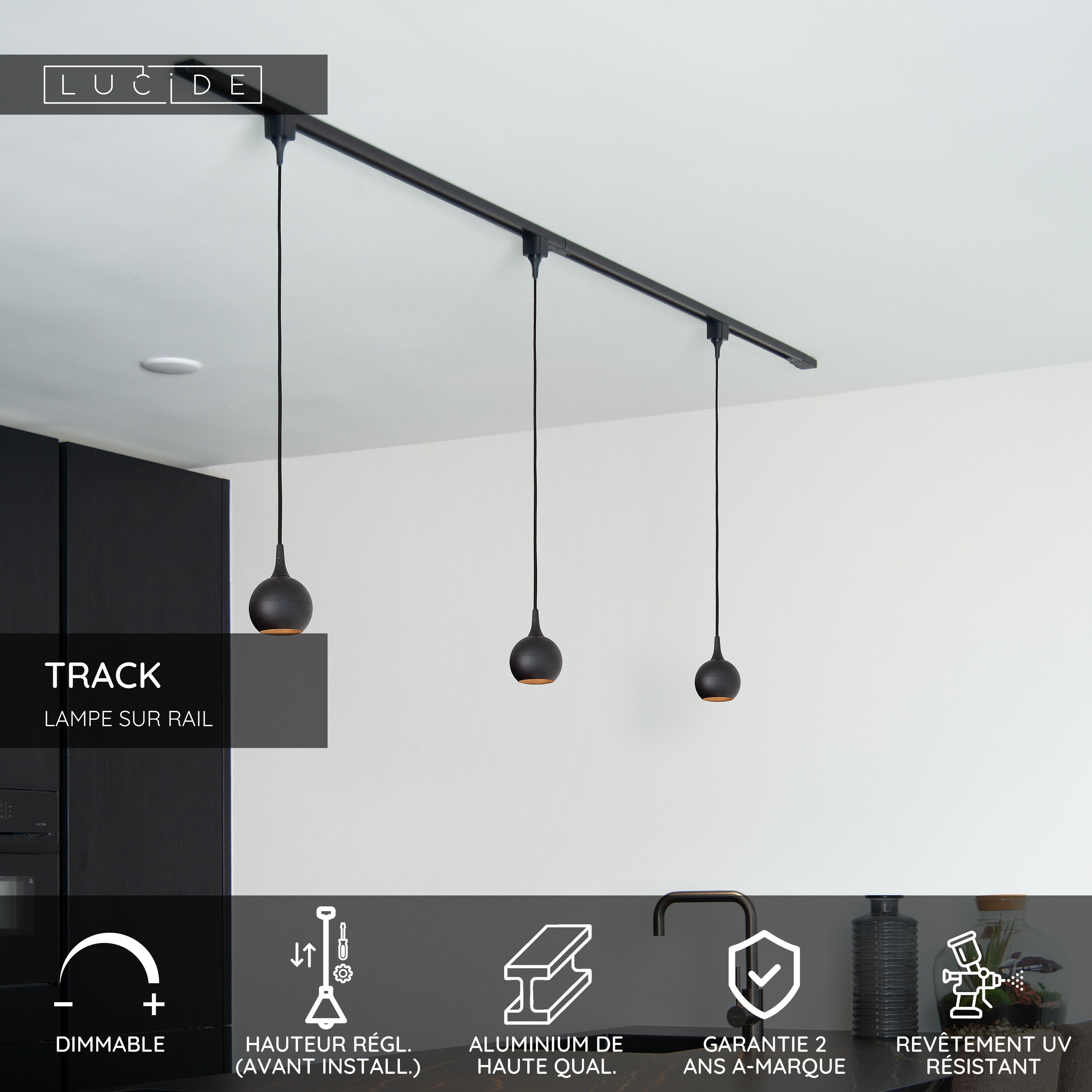 Lucide TRACK FAVORI Suspension - Système de rail monophasé / Éclairage sur rail - 1xGU10 - Noir (Extension)