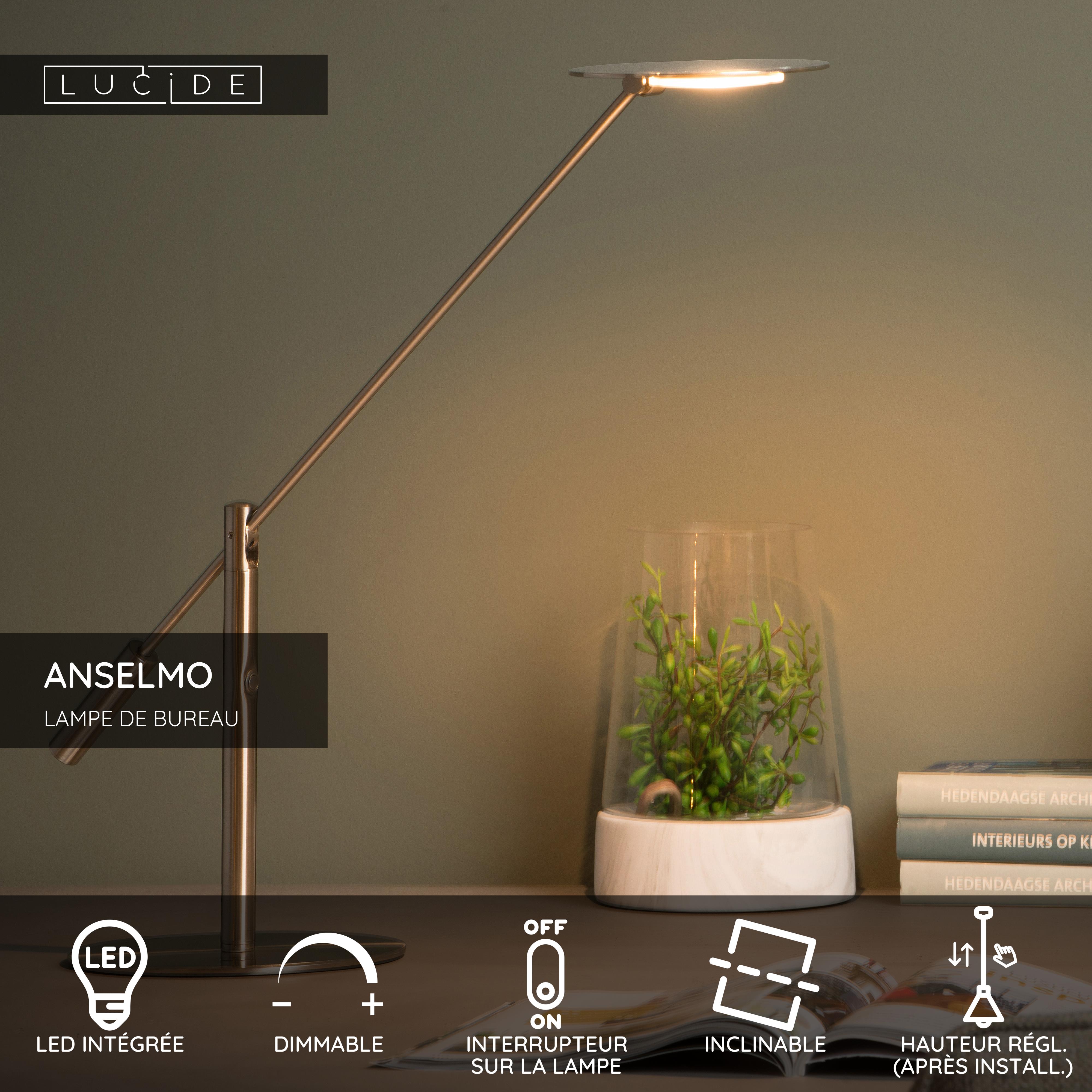 Lucide ANSELMO - Lampe de bureau - LED Dim. - 1x9W 3000K - Chrome Dépoli