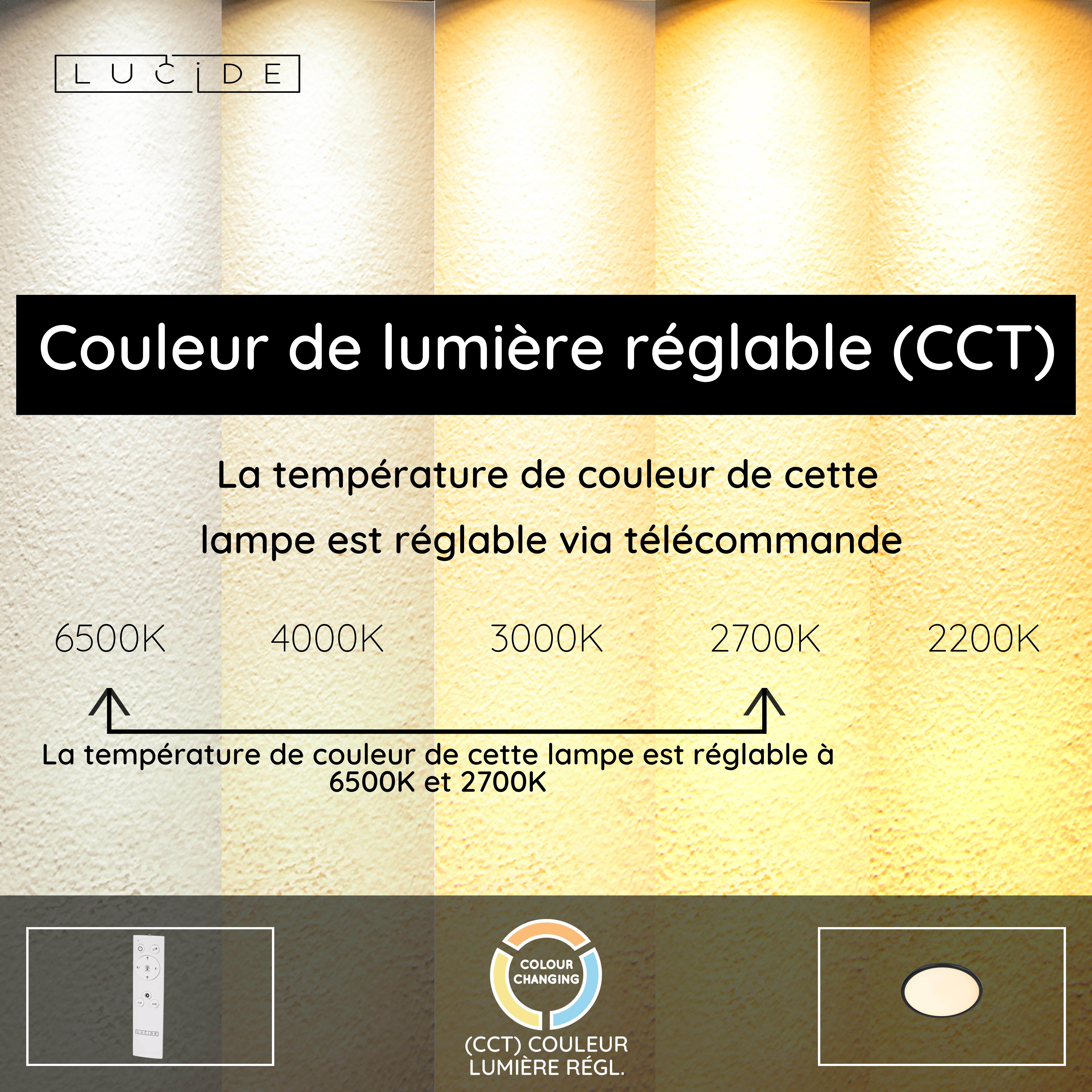 - Température de couleur réglable via télécommande (2700K-6500K)