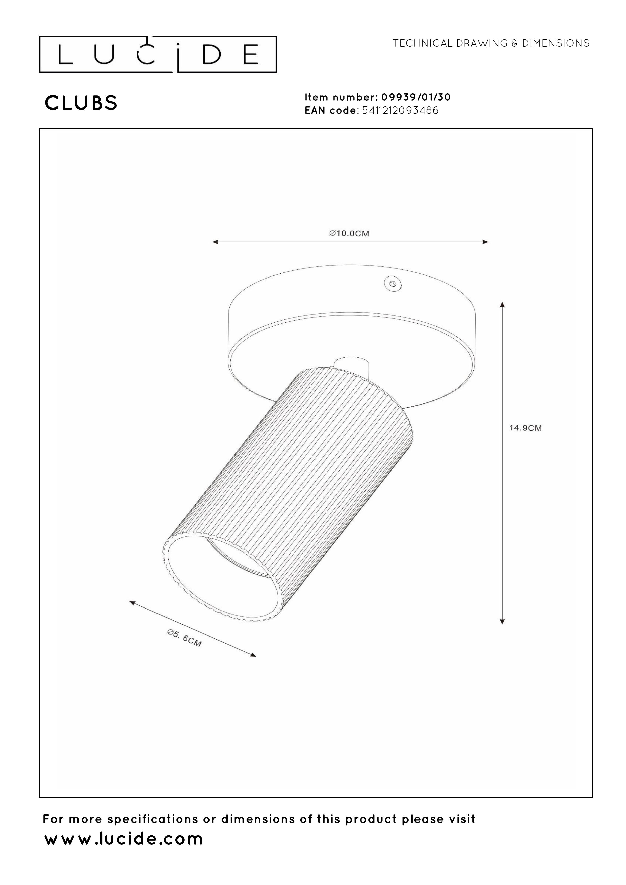 Lucide CLUBS - Spot plafond - 1xGU10 - Noir