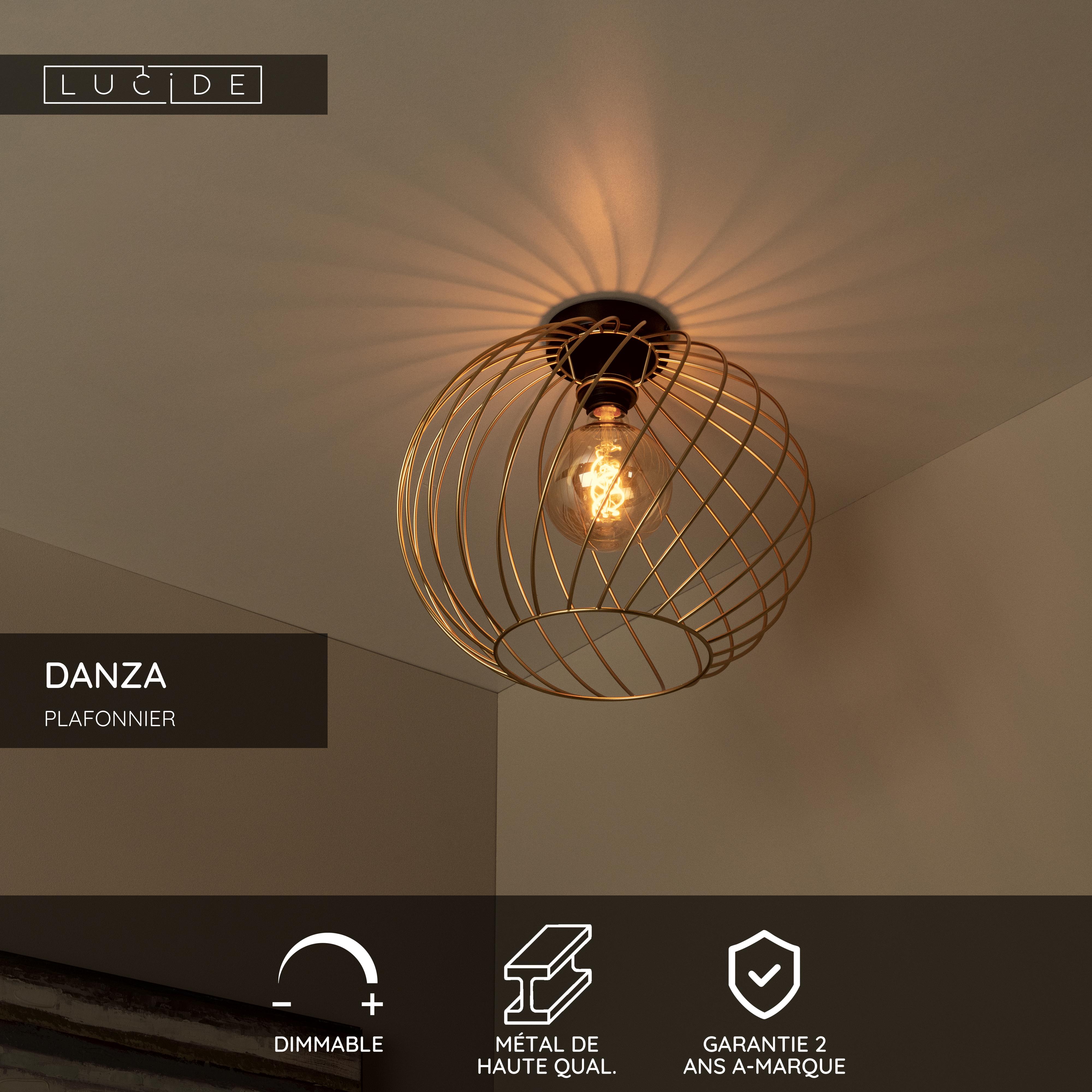 Faites entrer ce plafonnier ludique dans votre maison et donnez un coup de fouet à votre intérieur. Ce luminaire sphérique entoure la source lumineuse de fils métalliques fins et torsadés. Grâce à sa structure ouverte, Danza peut parfaitement accueillir une belle ampoule à filament. Grâce à un variateur externe, vous pouvez également contrôler l'intensité de la lumière en fonction de votre humeur. Danza trouve sa place dans n'importe quelle pièce : du coin salon confortable à la cuisine accueillante en passant par la chambre à coucher discrète. Ce plafonnier présente un diamètre de 40 centimètres et une hauteur de 35,5 centimètres.