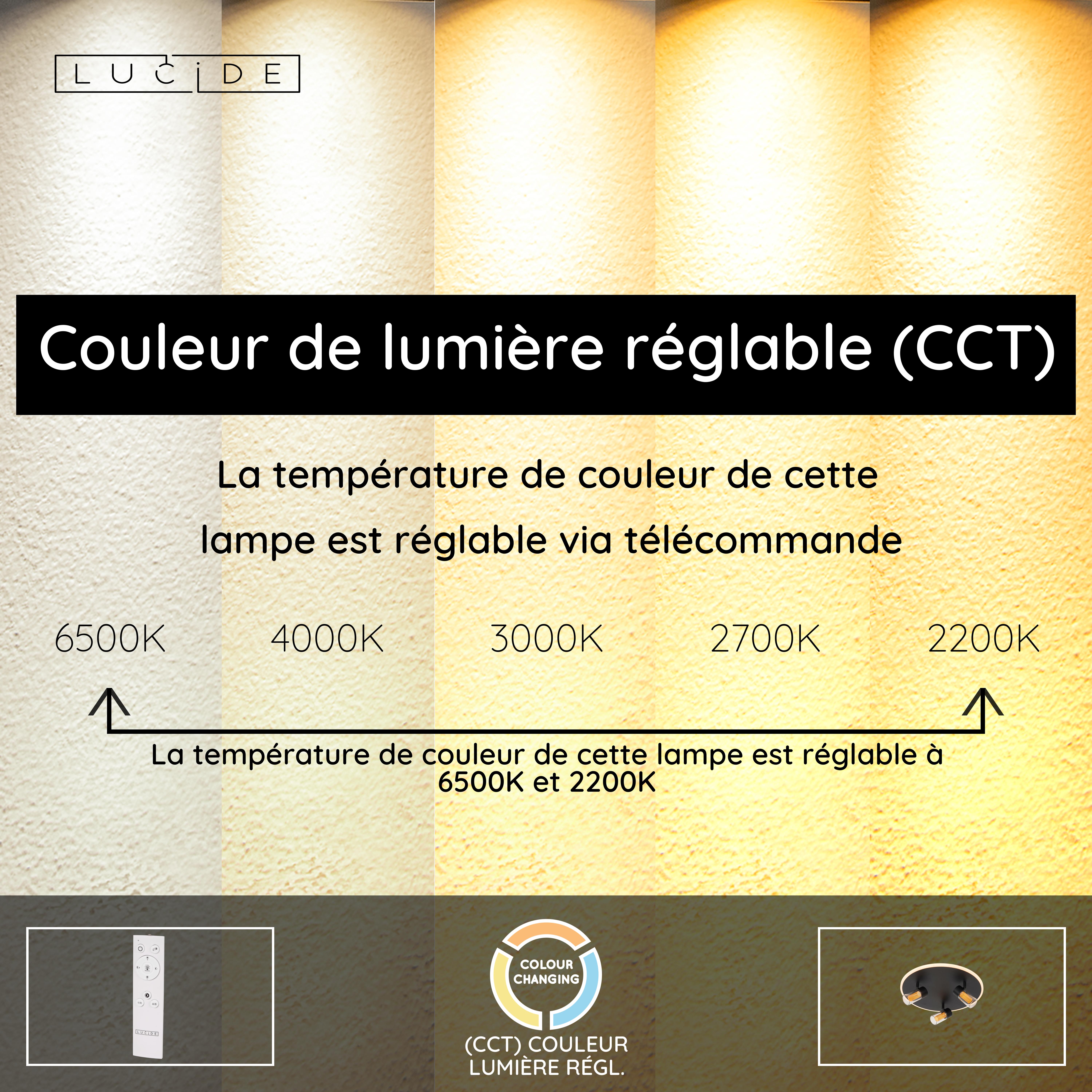 - Température de couleur réglable via télécommande (2200K-6500K)