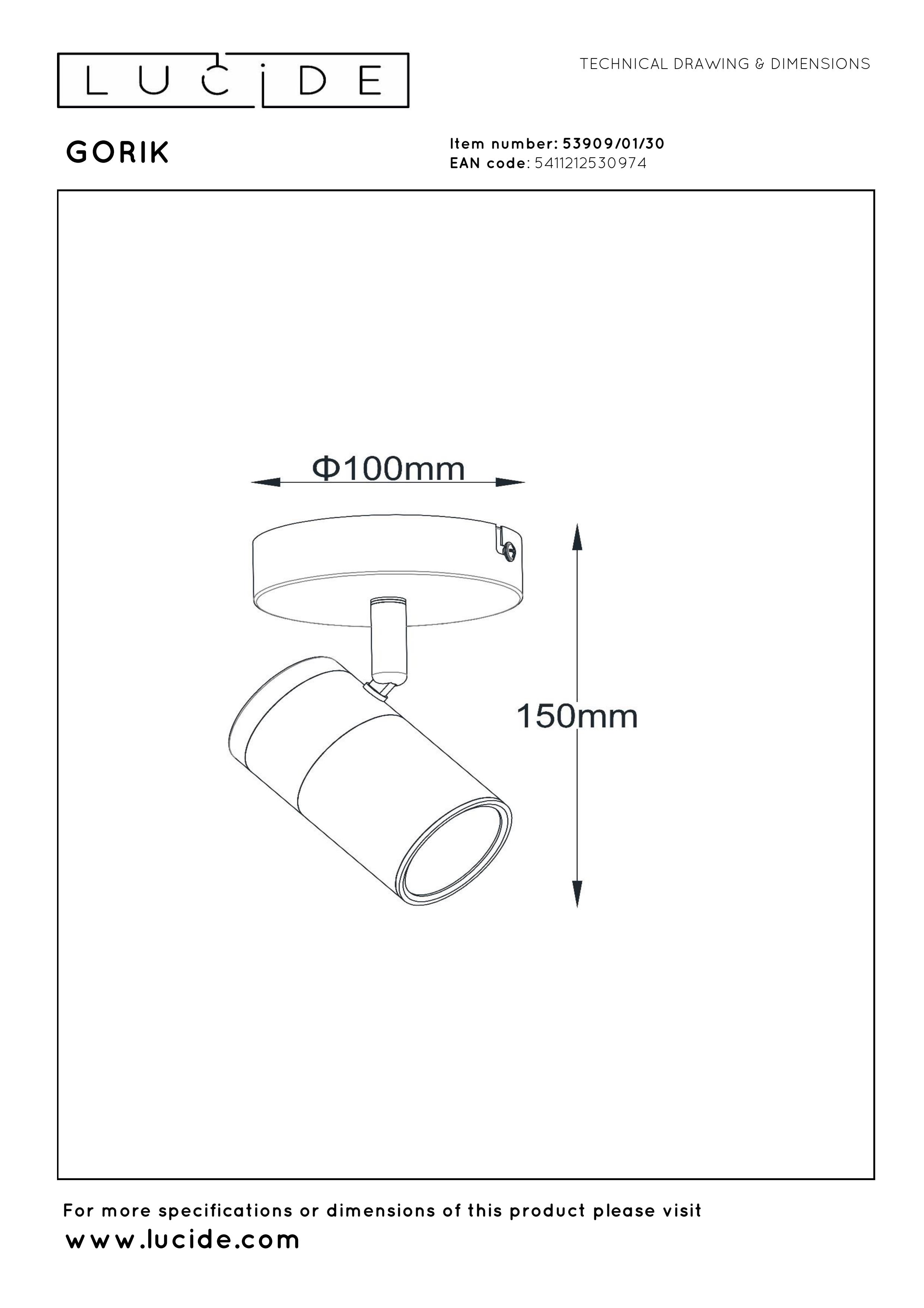 Lucide GORIK - Spot plafond - 1xGU10 - Noir