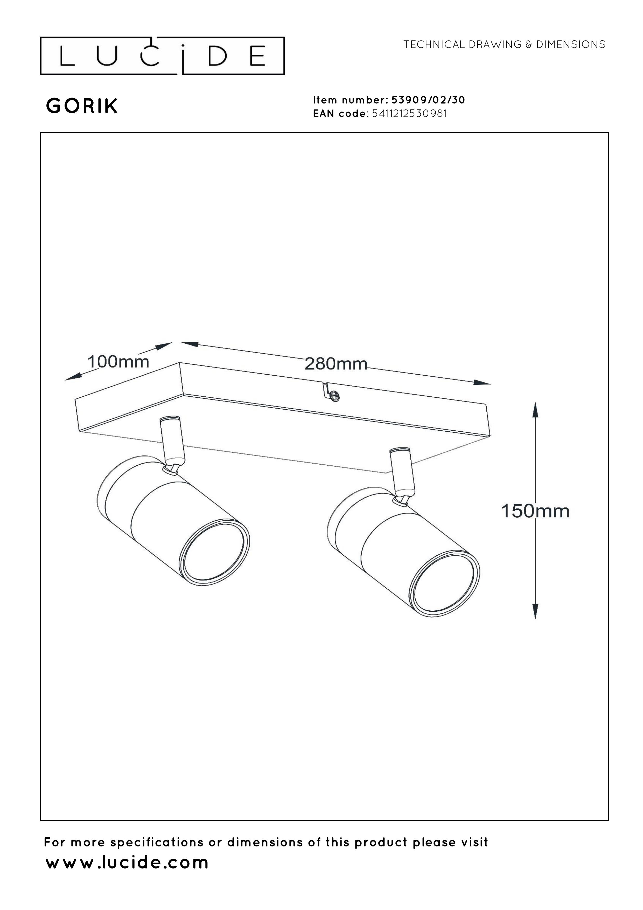 Lucide GORIK - Spot plafond - 2xGU10 - Noir