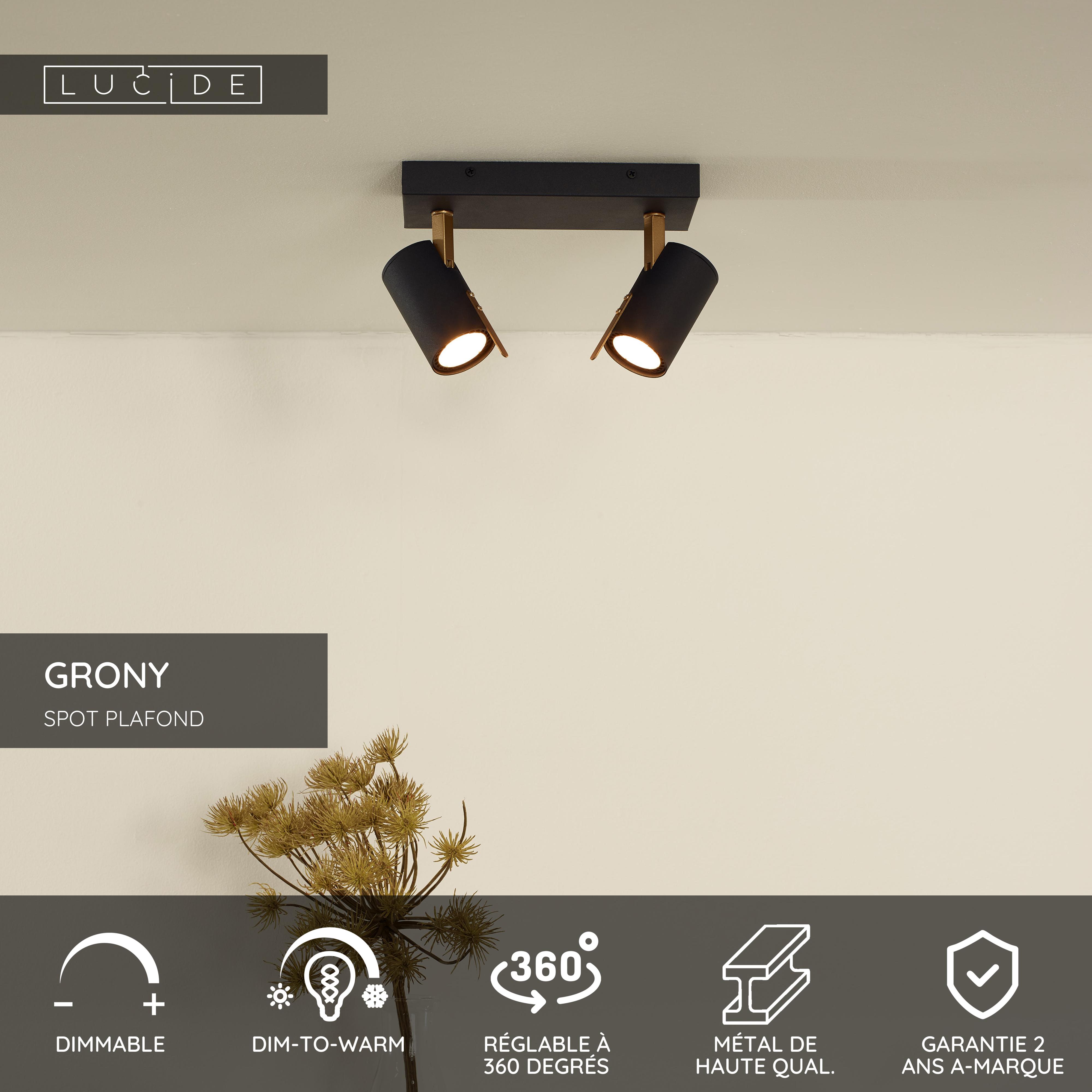 Lucide GRONY - Spot plafond - LED Dim to warm - GU10 - 2x5W 2200K/3000K - Noir