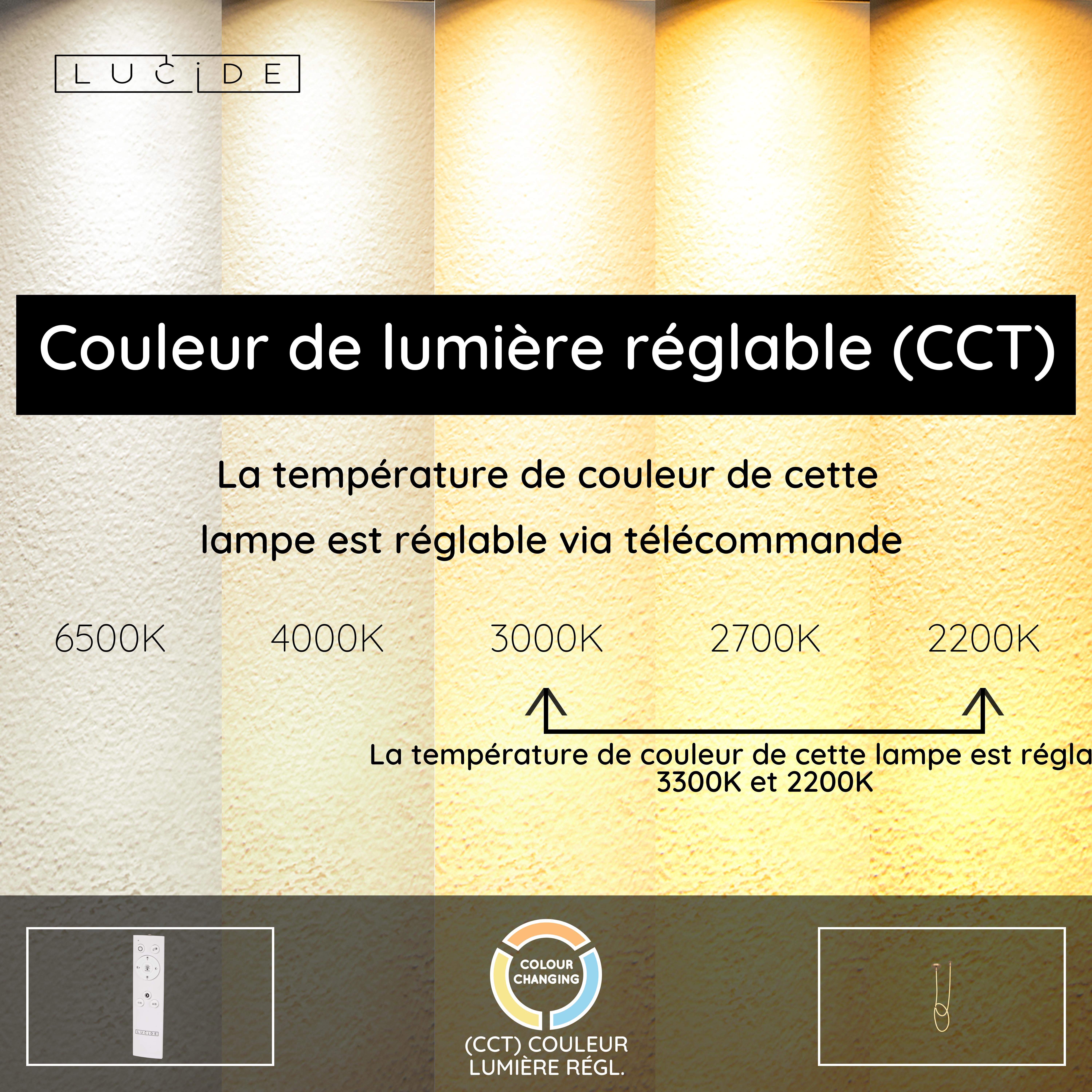 - Température de couleur réglable via télécommande (2200K-3300K)