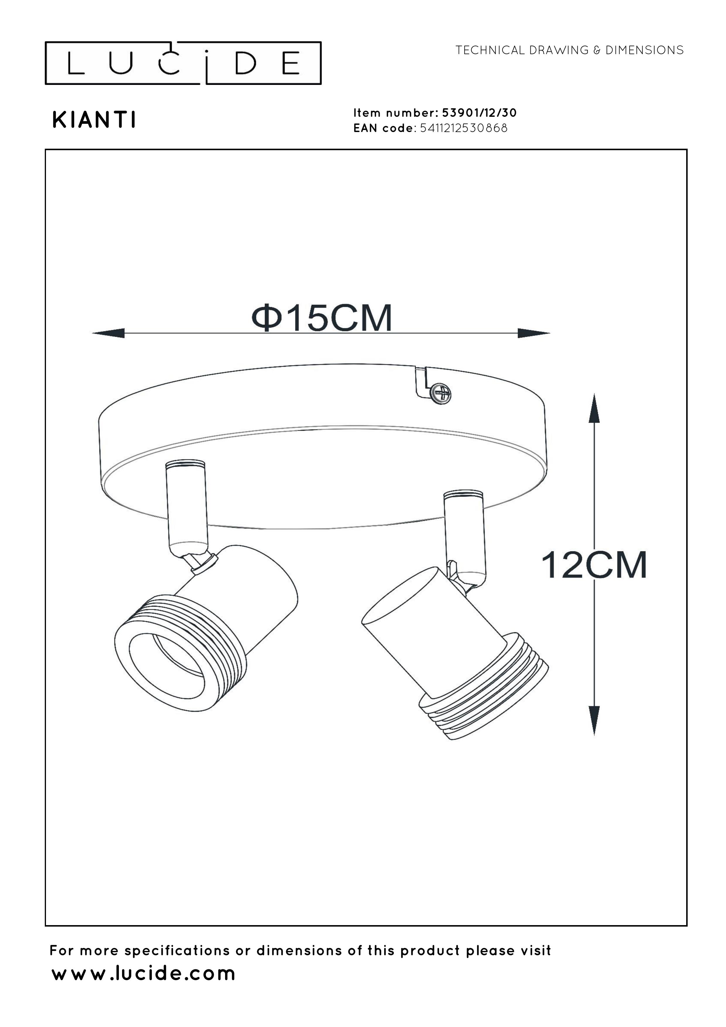 Lucide KIANTI - Spot plafond - Ø 15 cm - 2xGU10 - Noir