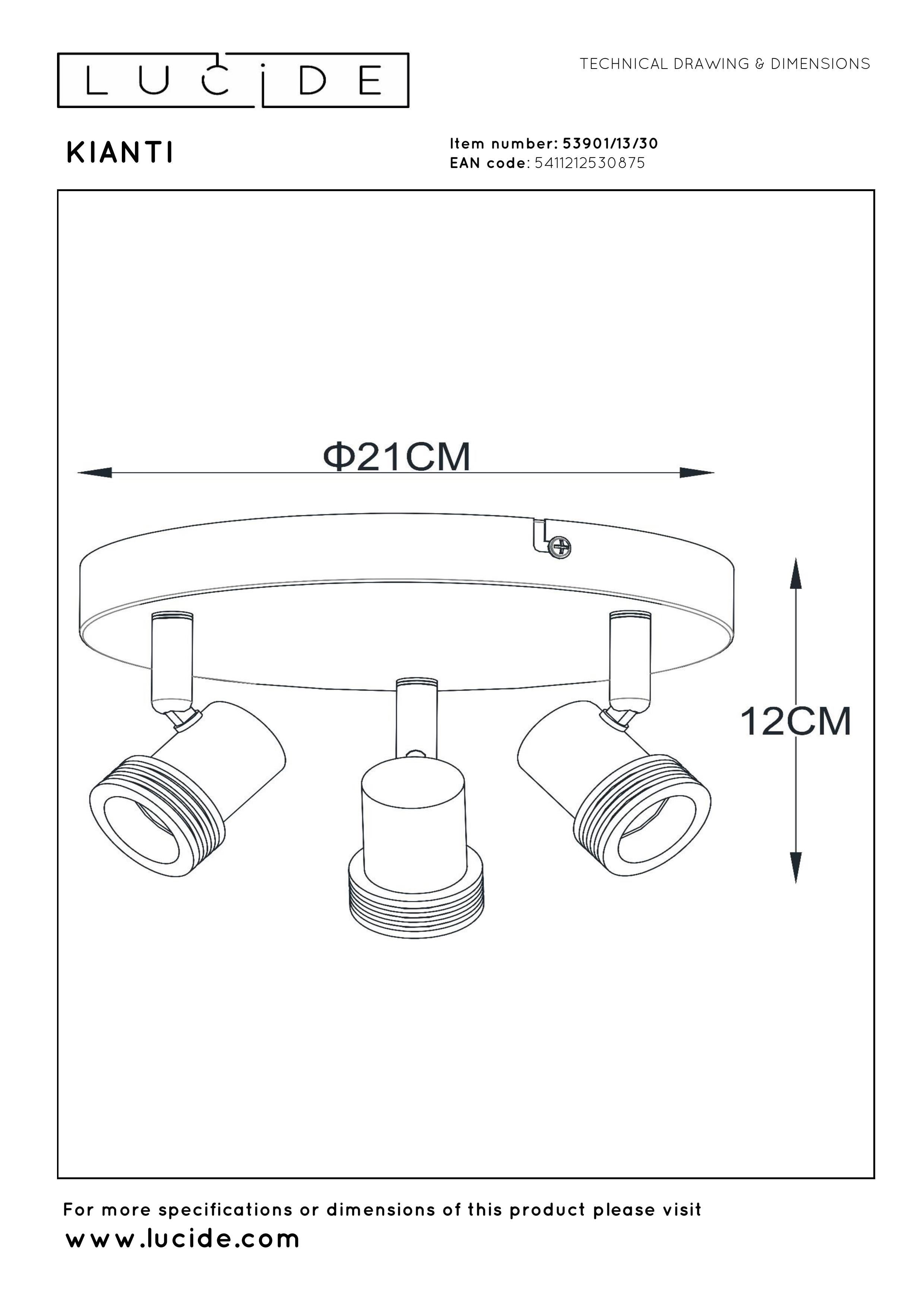 Lucide KIANTI - Spot plafond - Ø 21 cm - 3xGU10 - Noir