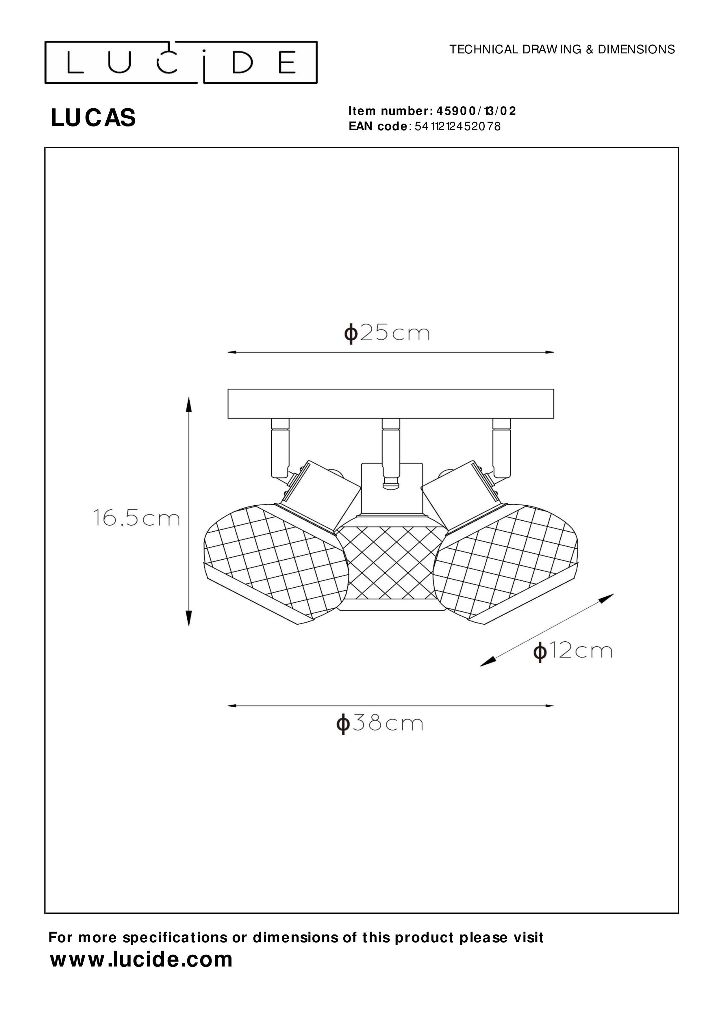 Toutes les bonnes choses se composent de trois, il suffit de regarder le projecteur de plafond Lucas. Ses 3 points lumineux, entourés d'une cage dorée, sont fixés à une plaque circulaire de 25 centimètres de diamètre. Tout est fait de métal de haute qualité. Lucas est un homme moderne avec une belle allure et un air dur, mais branchez-le à un gradateur et il obtient immédiatement une touche d'élégance. Vous choisissez ce que vous voulez mettre sous les projecteurs, car les points lumineux peuvent être inclinés et pivotés à 360 degrés.