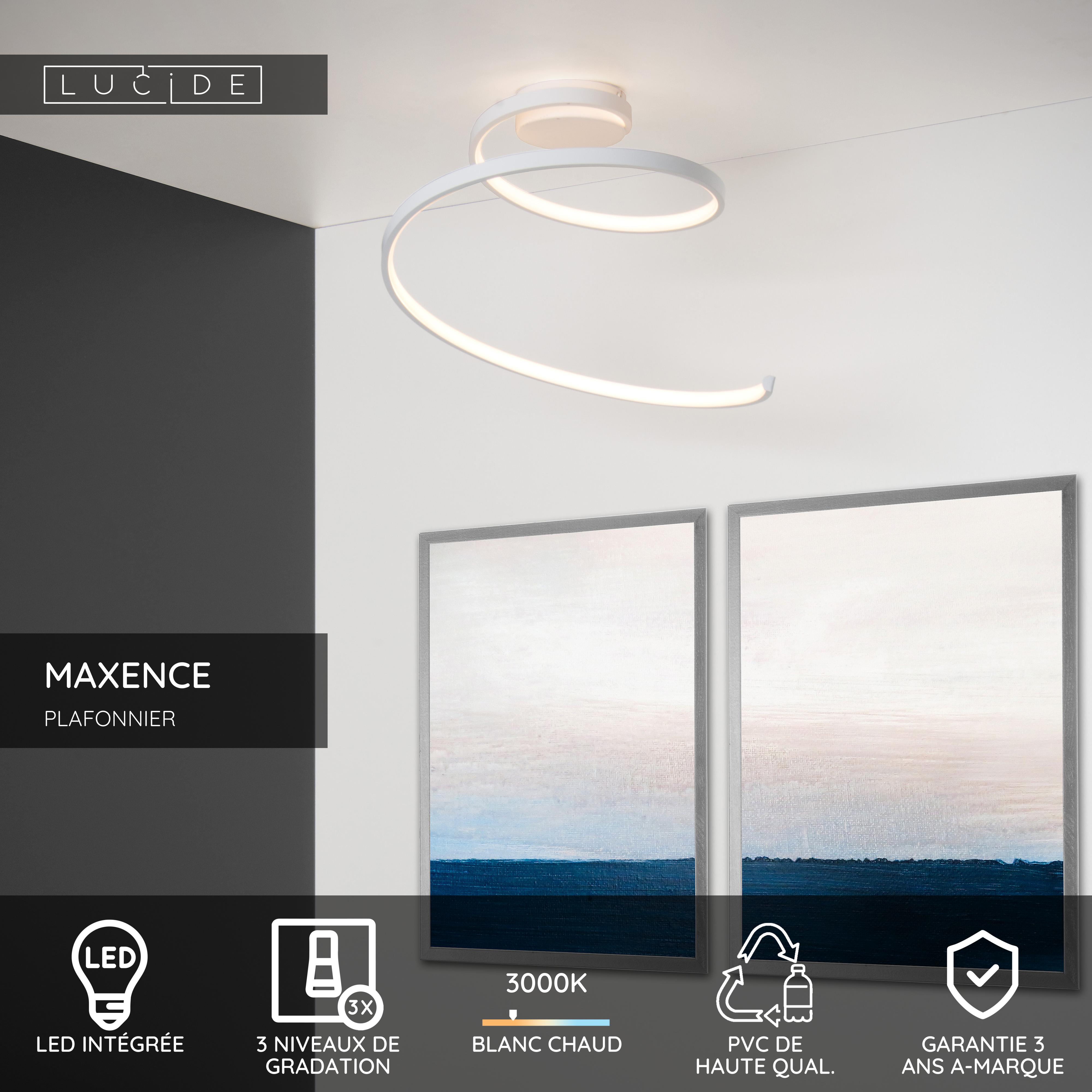Un tourbillon de lumière ? Découvrez l'univers de Maxence et donnez un cachet supplémentaire à votre intérieur avec ce magnifique plafonnier. Sa structure arrondie en PVC s'étend sur 35 centimètres. On ne laisse pas Maxence dans un coin. Ce plafonnier projette une lumière unique sur votre tableau préféré accroché au mur ou sur votre objet d'art préféré posé sur la commode. Maxence convient également au coin lecture du salon. Maxence possède 3 réglages grâce à la fonction de variation d'intensité de l'interrupteur mural.