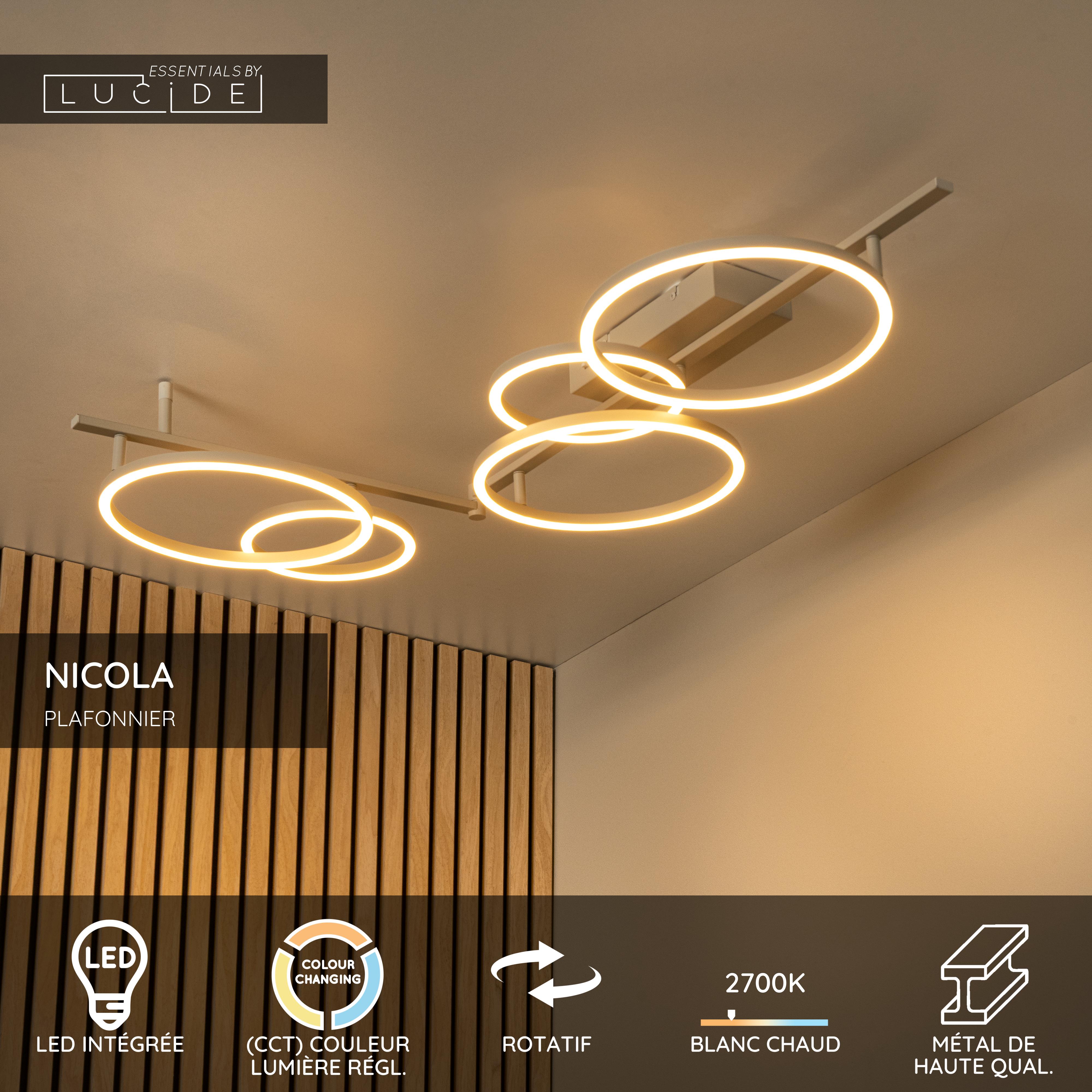 Lucide NICOLA - Plafonnier - LED - CCT - 1x37W 2700K/4000K - Taupe | Essential