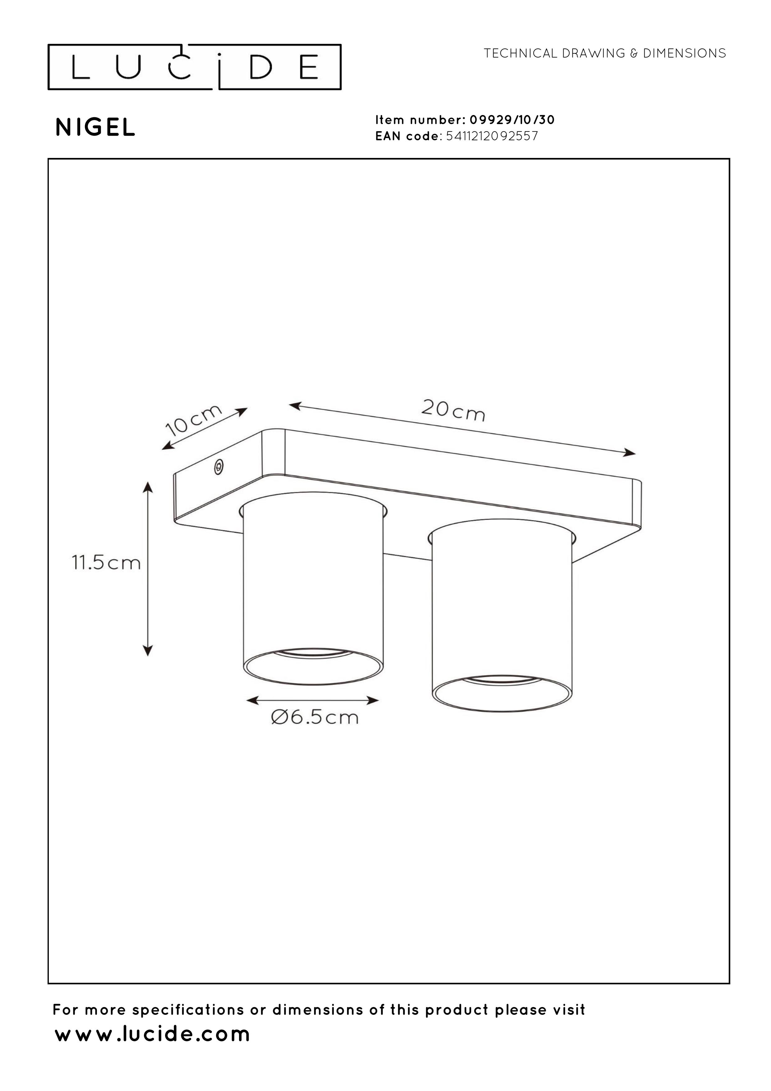 Voici Nigel, un spot plafond compatible avec deux sources lumineuses LED GU10 dim to warm. Ceux-ci émettent une lumière de 2200 à 3000k. Une conception simple et intemporelle munie d'un abat-jour cylindrique pour que le spot se sente à sa place dans toute une variété de styles d'intérieur. Nigel est disponible en noir et en blanc. Et avec plusieurs points lumineux. La version blanche a reçu un accent noir, à l'intérieur du luminaire. Le spot plafond en aluminium mesure 12 centimètres. Fixez Nigel au plafond, équipez-le d'un variateur compatible, dirigez et inclinez le spot comme vous le voulez et profitez de sa lumière.