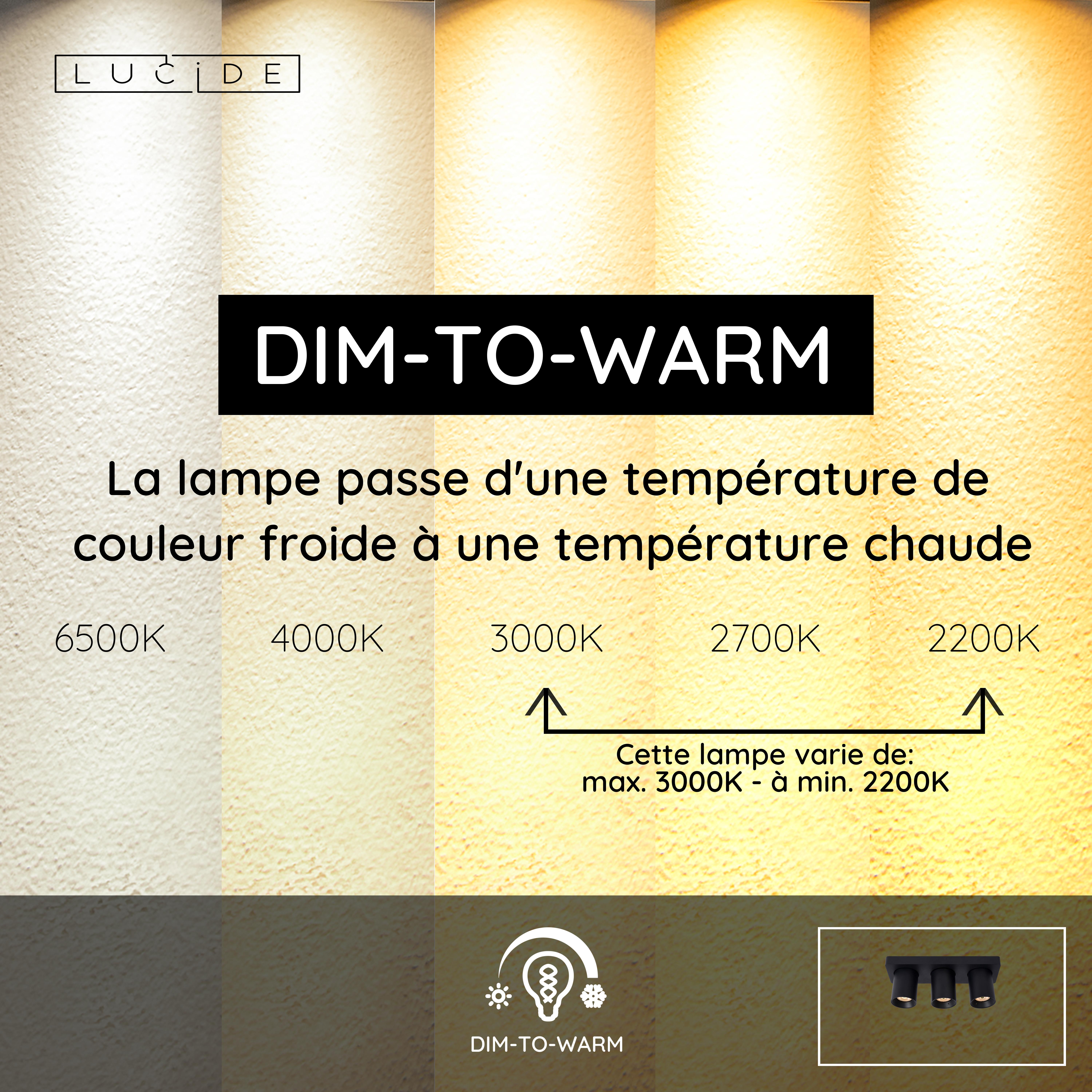 - Dim to warm, dimmable vers une couleur plus chaude (2200K)