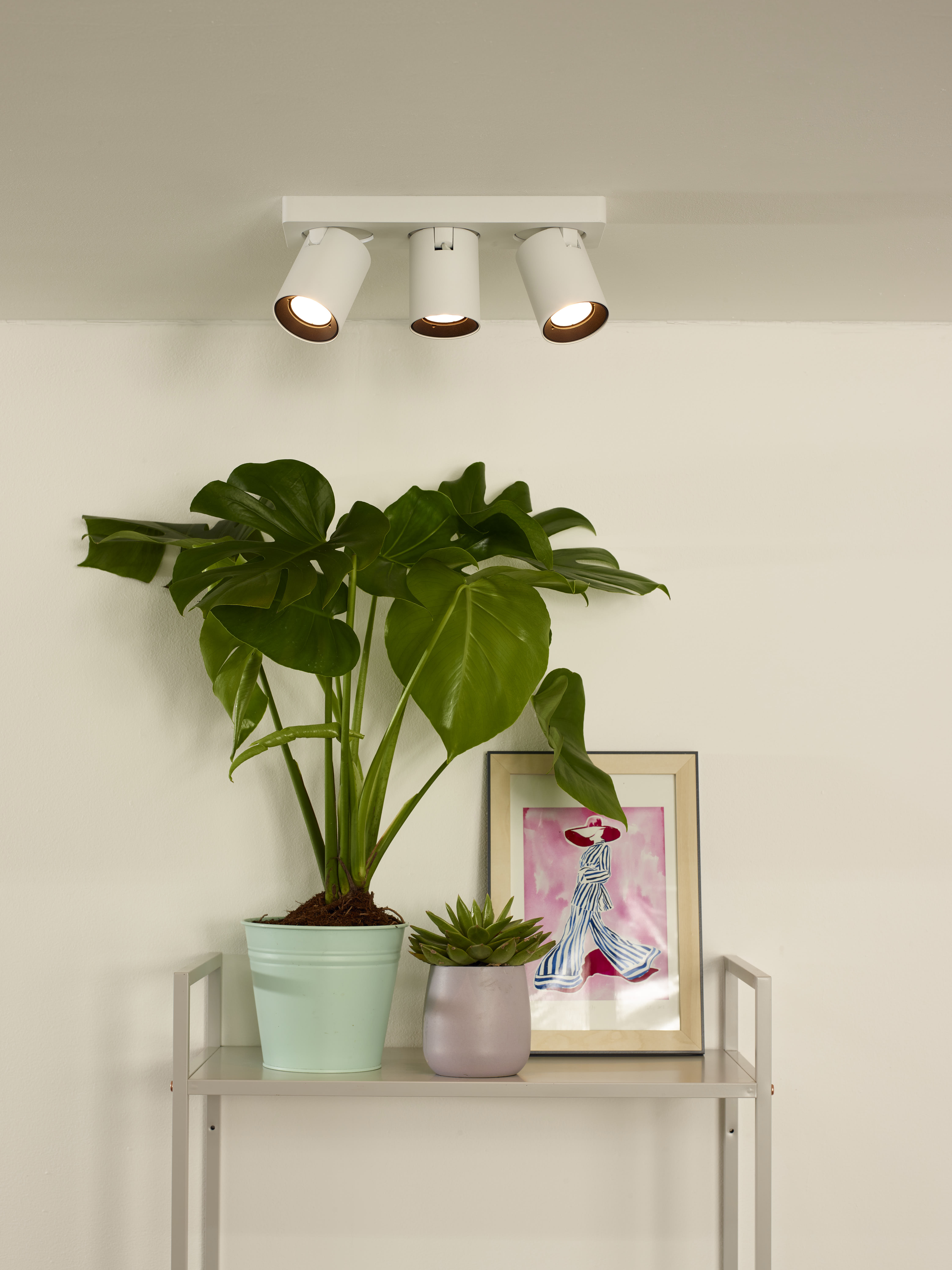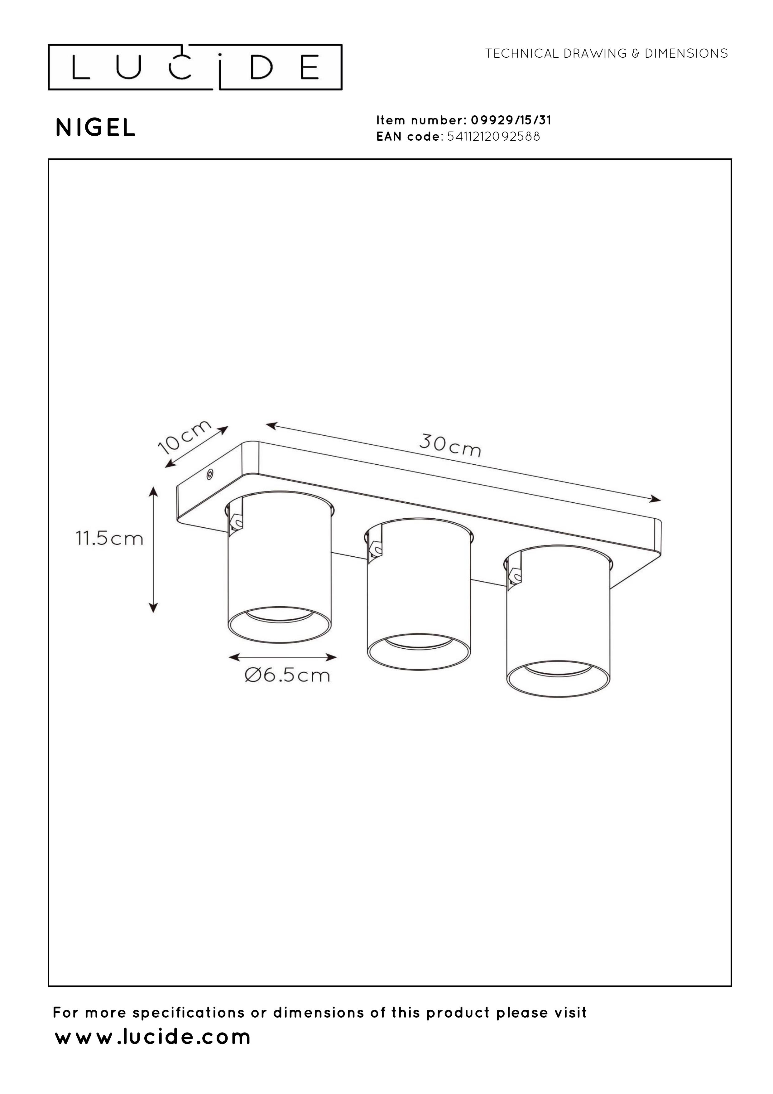 Voici Nigel, un spot plafond compatible avec trois sources lumineuses LED GU10 dim to warm. Ceux-ci émettent une lumière de 2200 à 3000k. Une conception simple et intemporelle munie d'un abat-jour cylindrique pour que le spot se sente à sa place dans toute une variété de styles d'intérieur. Nigel est disponible en noir et en blanc. Et avec plusieurs points lumineux. L'intérieur de la version blanche du luminaire est noir. Le spot plafond en aluminium mesure 12 centimètres. Fixez Nigel au plafond, équipez-le d'un variateur compatible, dirigez et inclinez le spot comme vous le voulez et profitez de sa lumière.