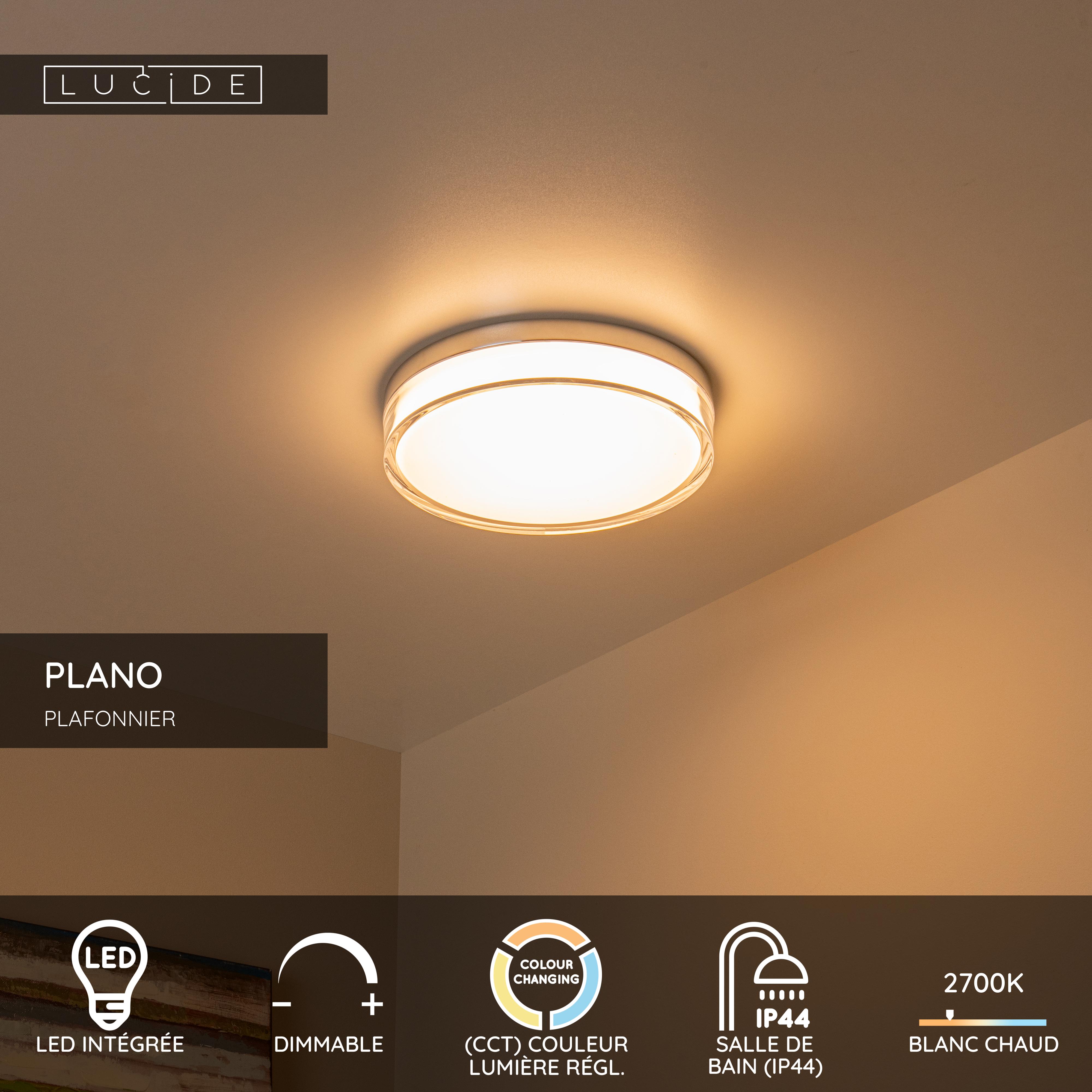 Lucide PLANO - Plafonnier Salle de bains - Ø 28 cm - LED Dim. - CCT - 1x16W 2700K/4000K - IP44 - Opalin