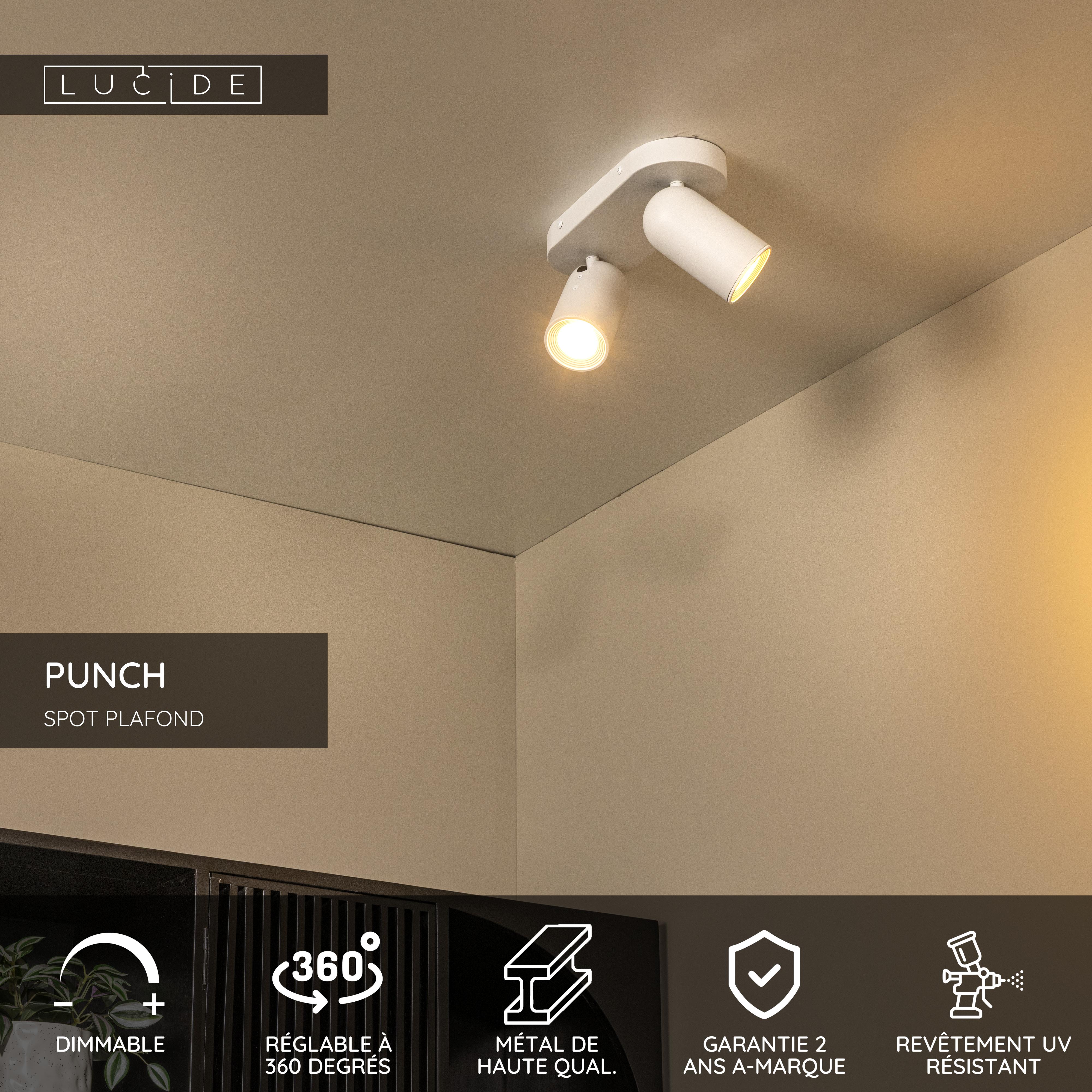 Lucide PUNCH - Spot plafond - 2xGU10 - Blanc