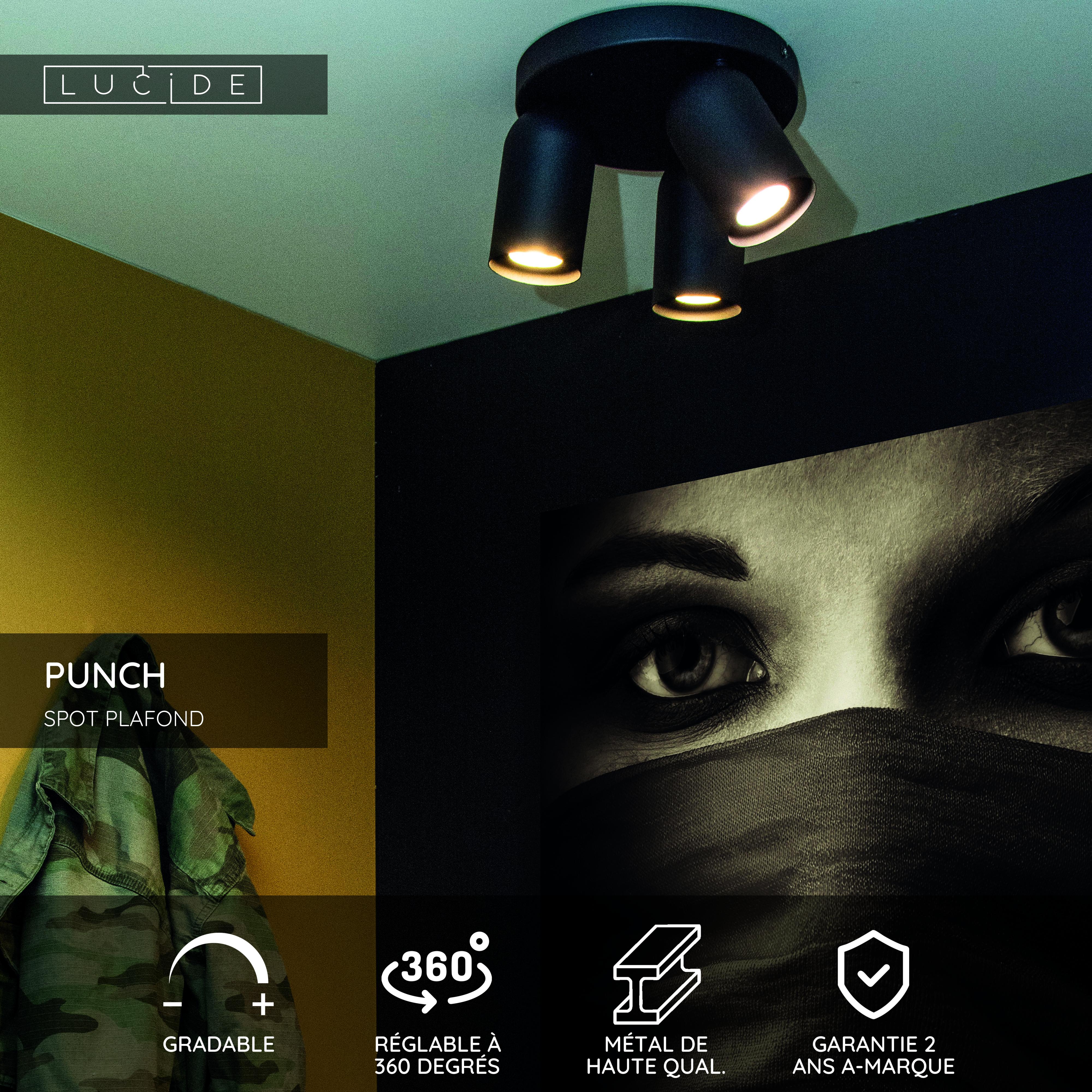 Lucide PUNCH - Spot plafond - Ø 21 cm - 3xGU10 - Noir