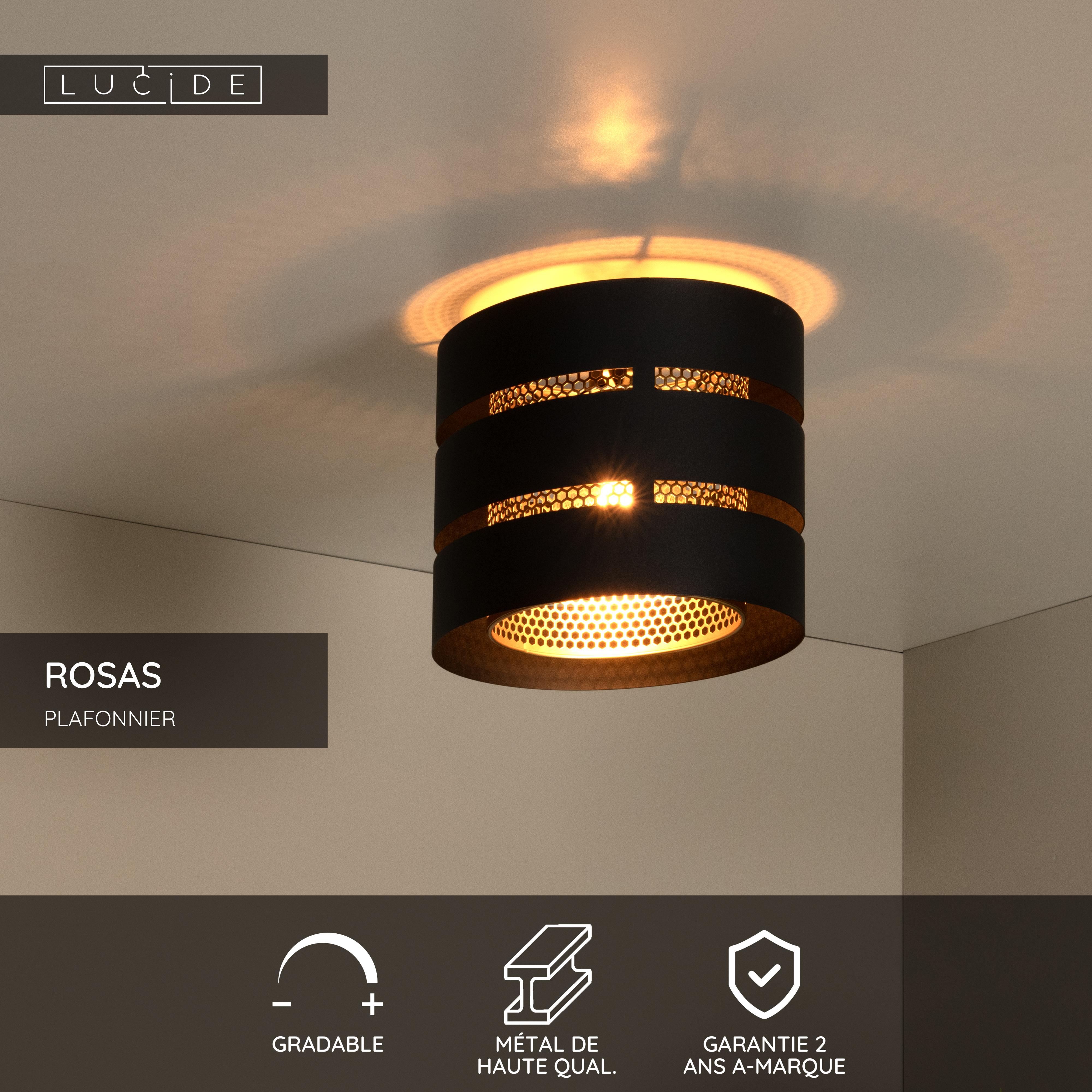 Lucide ROSAS - Plafonnier - Ø 26 cm - 1xE27 - Noir