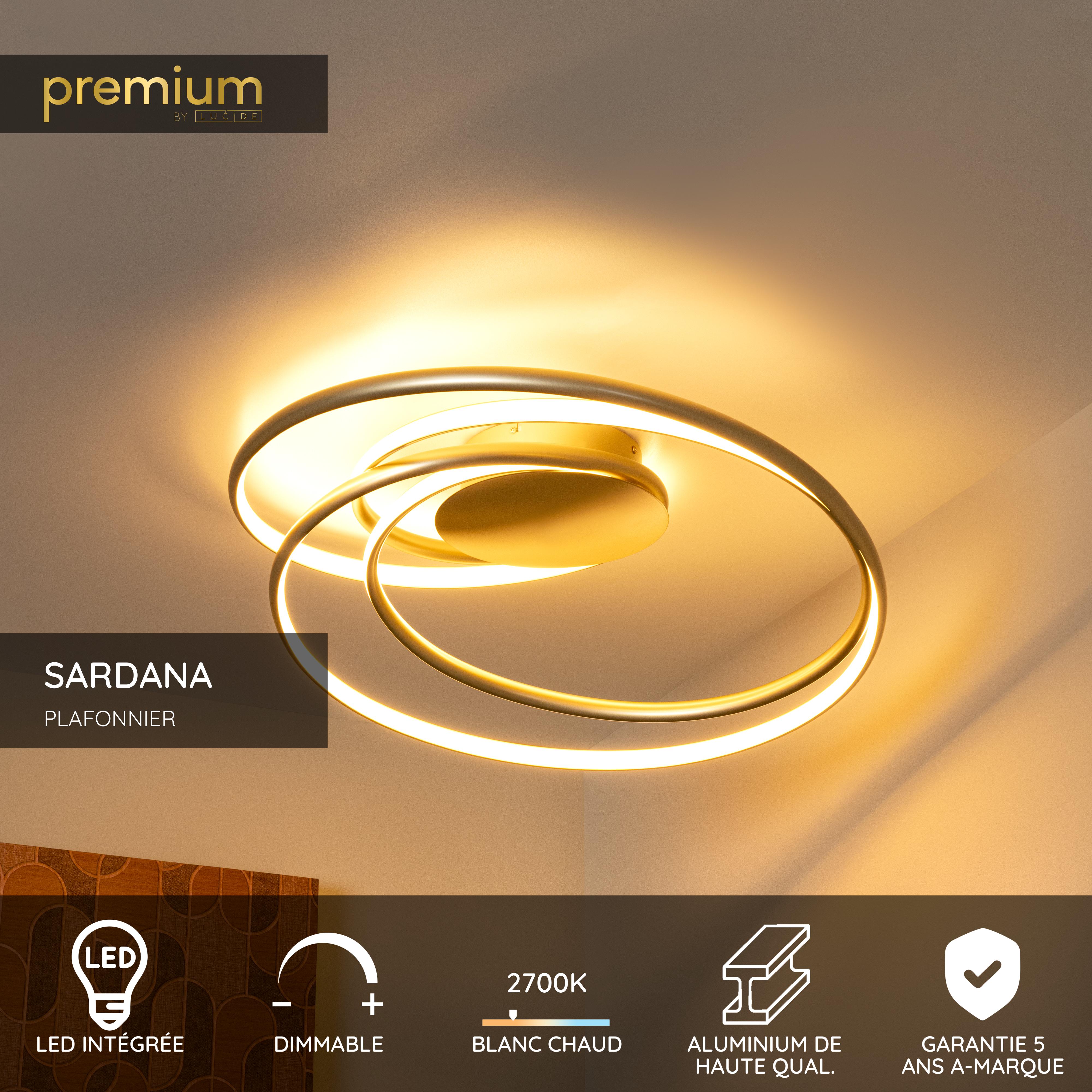 Lucide SARDANA - Plafonnier - LED Dim. - 1x54W 2700K - Or Mat / Laiton | Premium