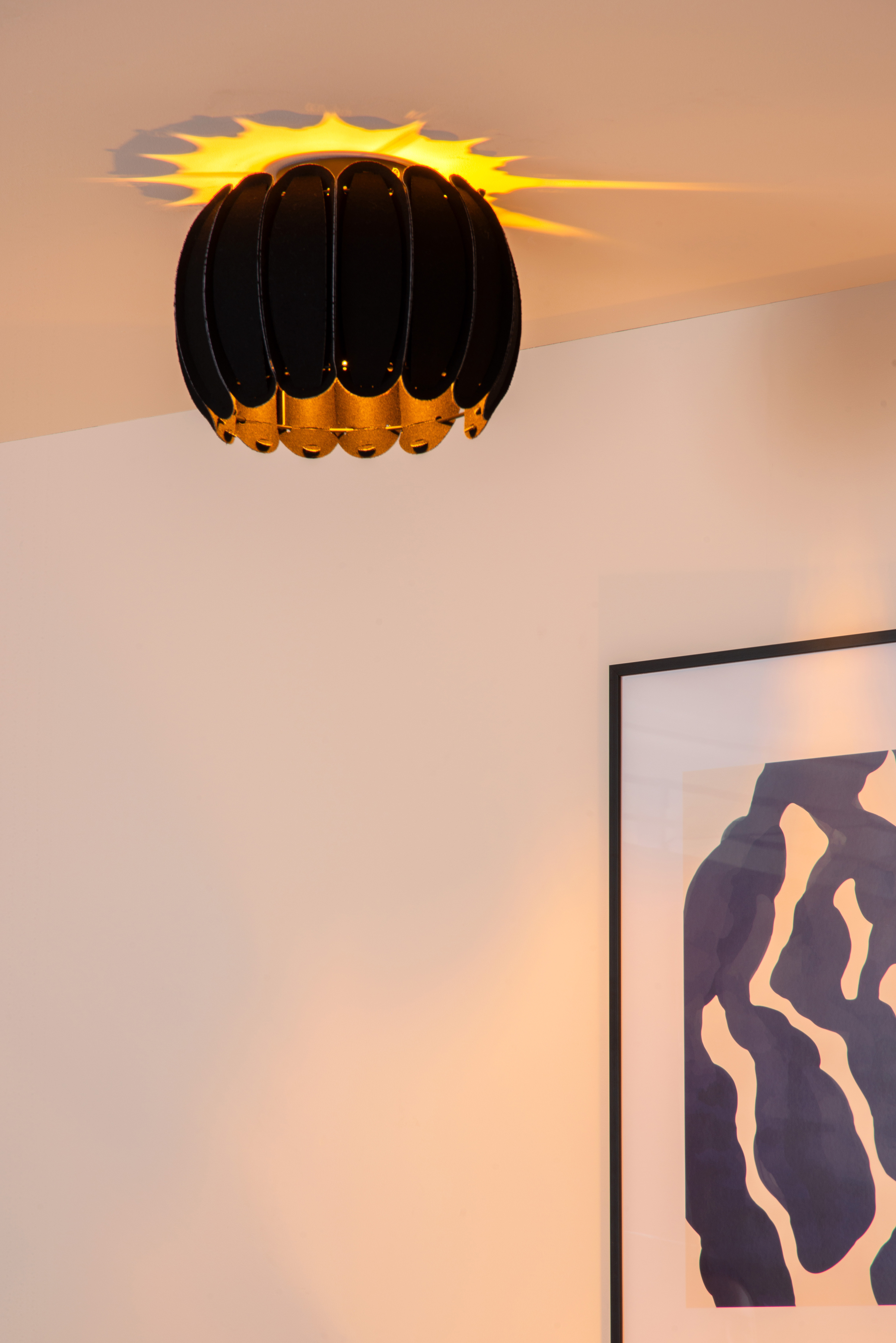 Comme des boutons floraux perçants au premier soleil printanier, ainsi jaillit Spencer de votre plafond. Ce plafonnier décoratif en feutre de haute qualité illuminera tout votre espace. Un tantinet rétro et très naturel, mais toujours un accroche-regard surprenant. Le plafonnier d'un diamètre de 30 centimètres est facile à fixer au plafond via la plaque d'acier et se connecte à un variateur en toute simplicité. De cette façon, vous pourrez facilement régler la luminosité. En plus, sa lueur douce et chaude crée un motif joyeux et lumineux. Vous ne vous ennuierez jamais de Spencer, c'est promis.