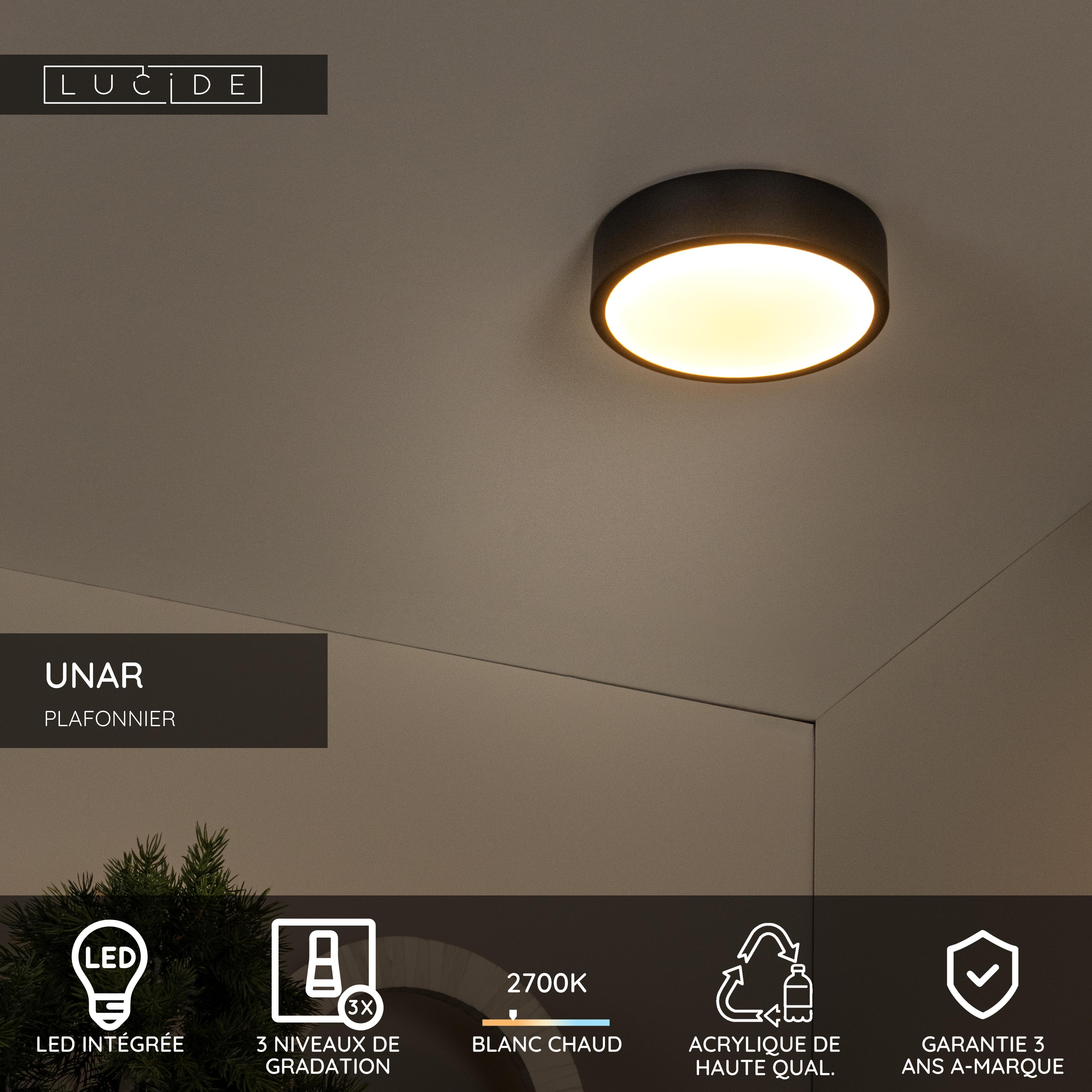 Lucide UNAR - Plafonnier - Ø 20 cm - LED 3 StepDim - 1x12W 2700K - Noir