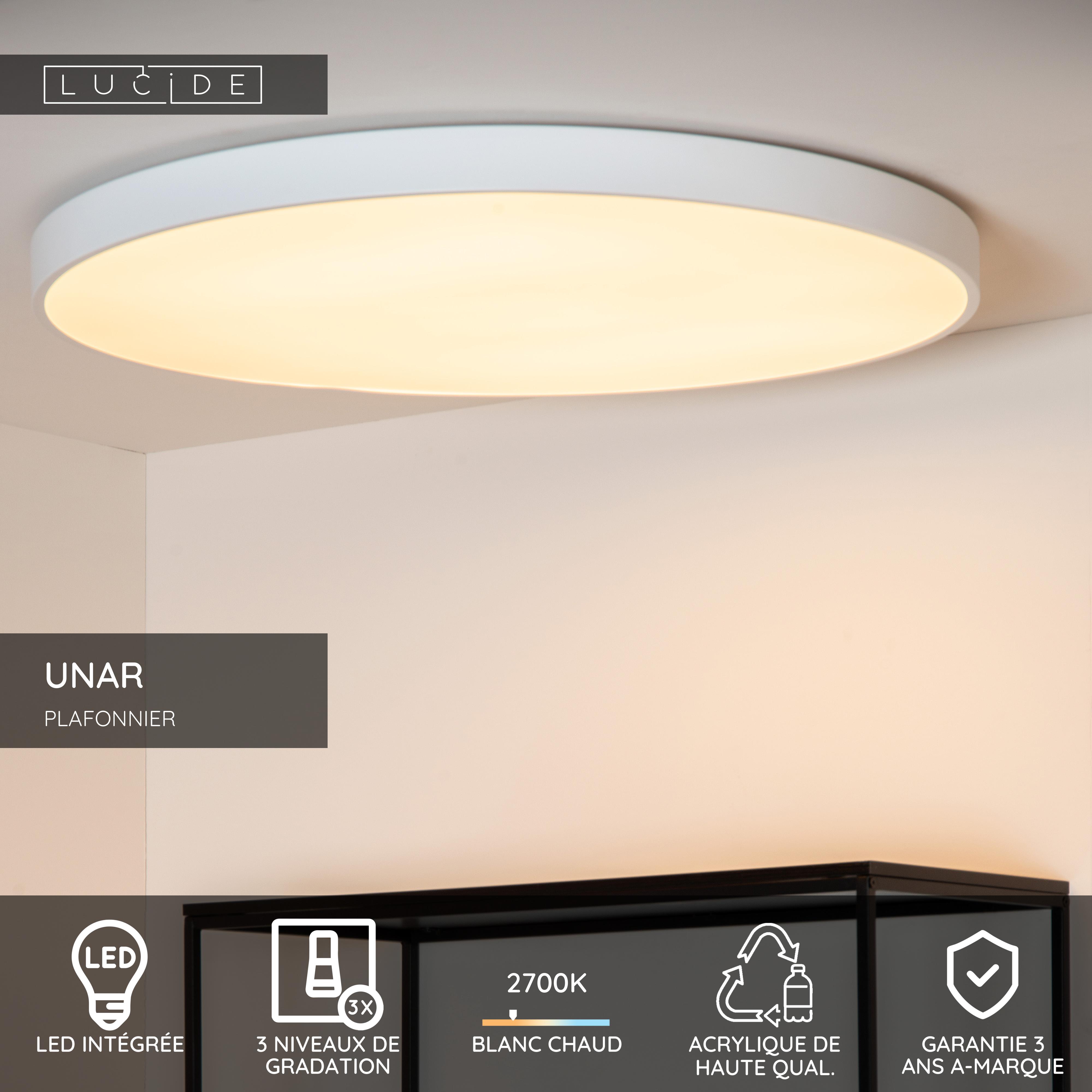 Lucide UNAR - Plafonnier - Ø 80 cm - LED 3 StepDim - 1x80W 2700K - Blanc