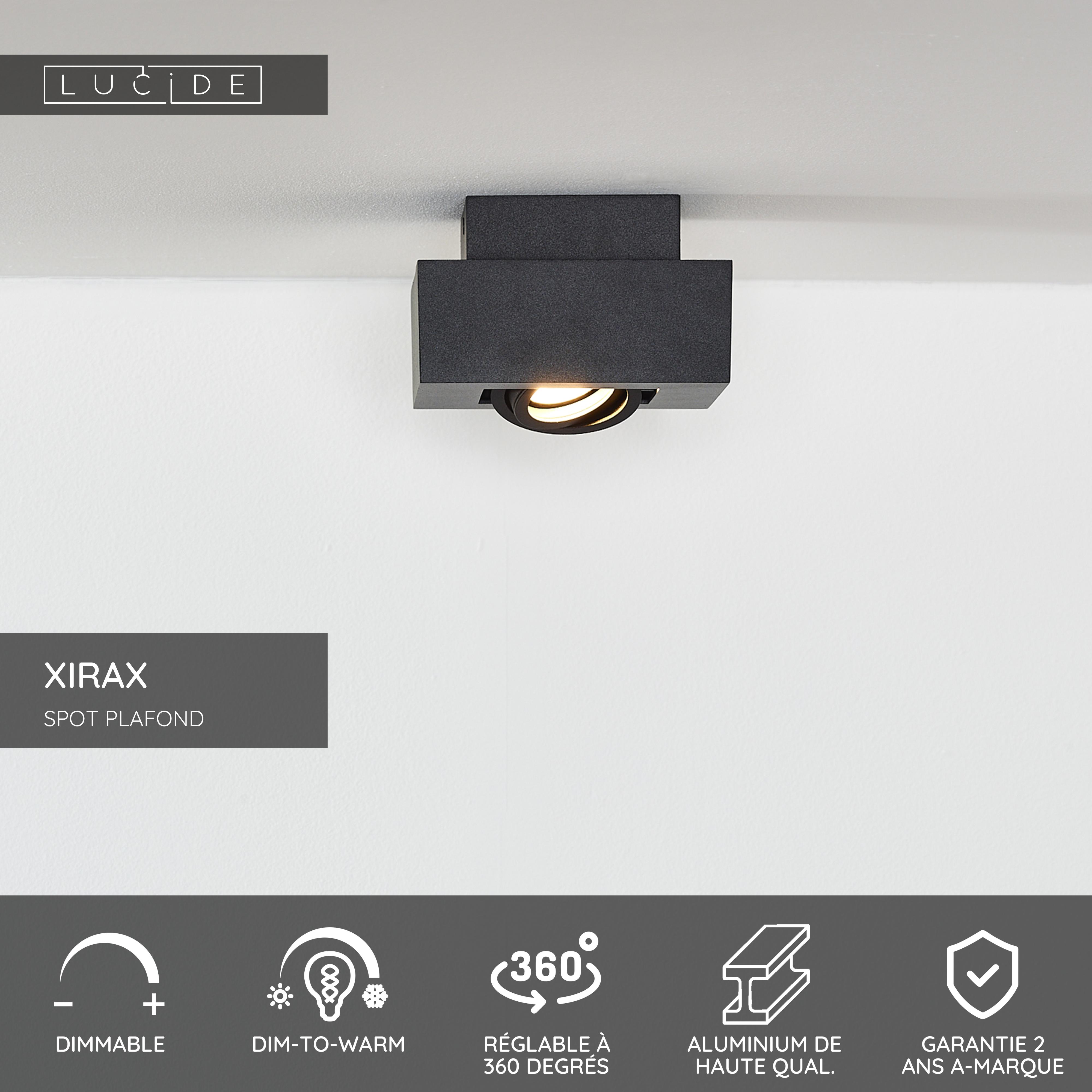 Lucide XIRAX - Spot plafond - LED Dim to warm - GU10 - 1x5W 2200K/3000K - Noir