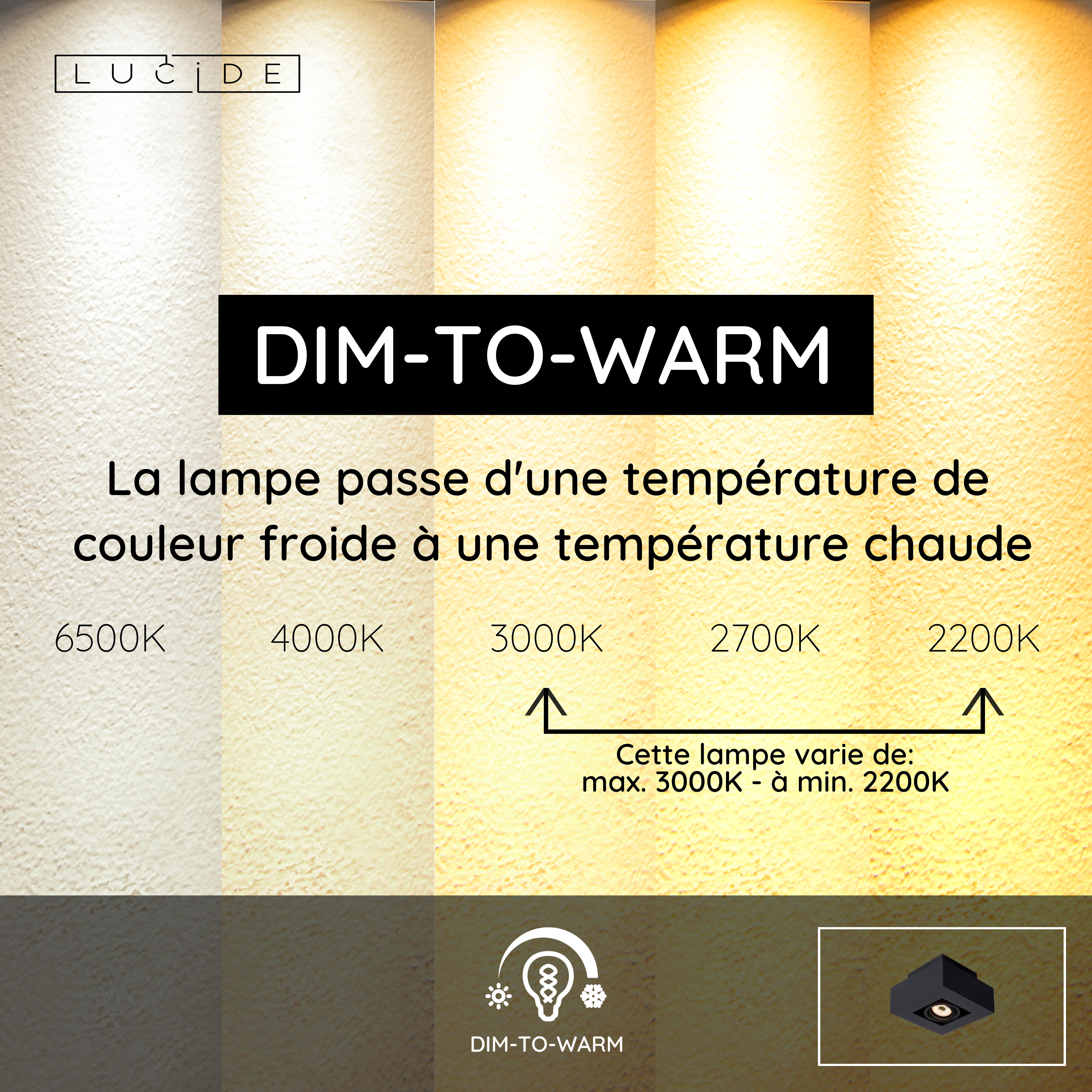 - Dim to warm, dimmable vers une couleur plus chaude (2200K)
