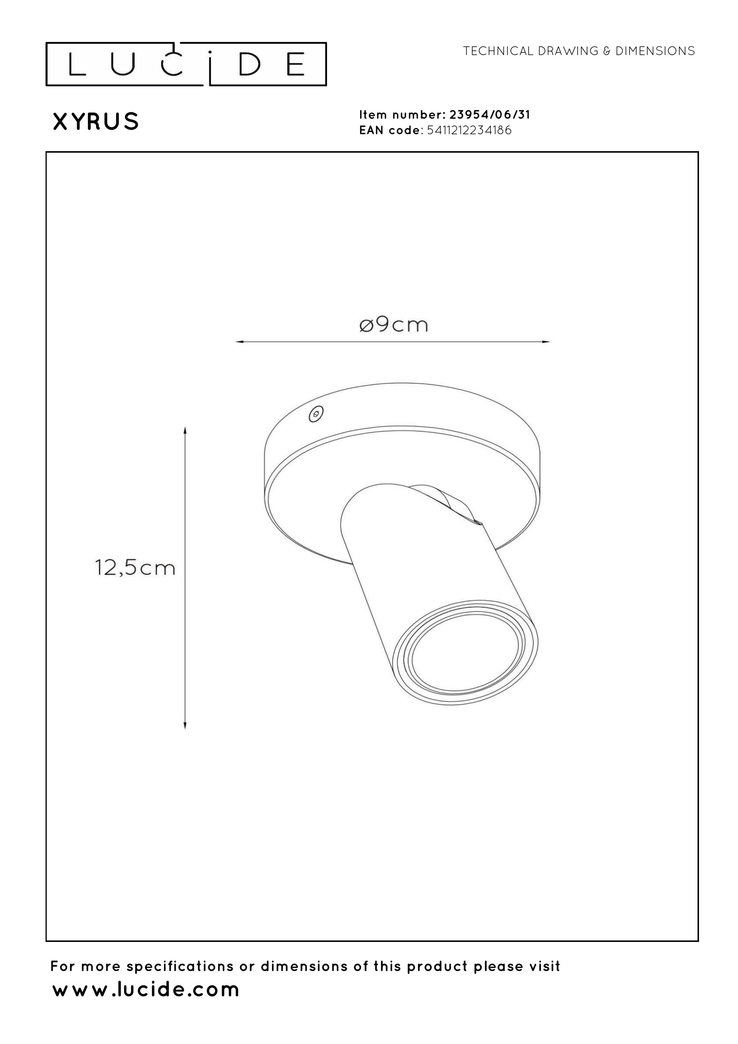Lucide XYRUS - Spot plafond - Ø 9 cm - LED Dim to warm - GU10 - 1x5W 2200K/3000K - Blanc