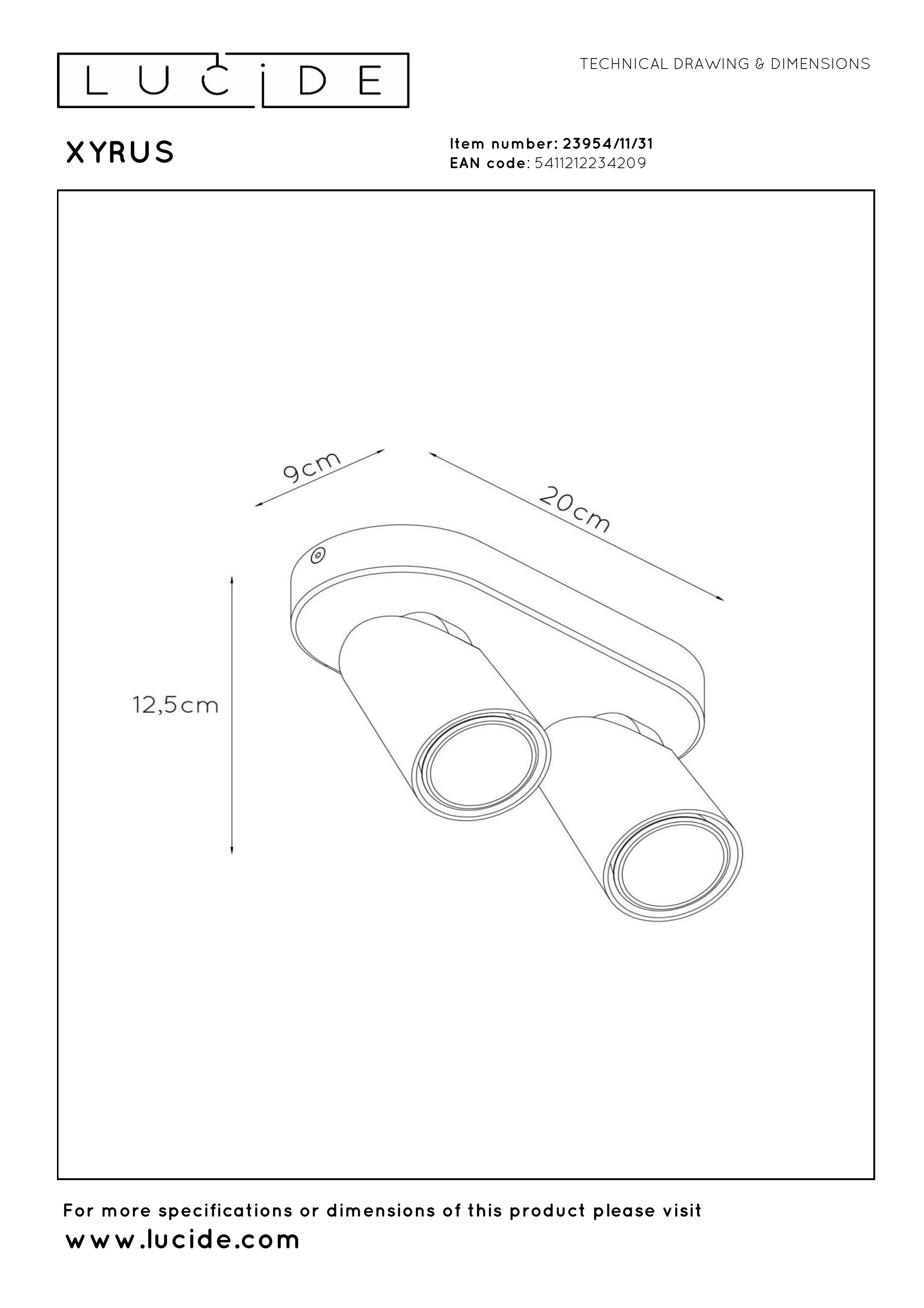 Lucide XYRUS - Spot plafond - LED Dim to warm - GU10 - 2x5W 2200K/3000K - Blanc