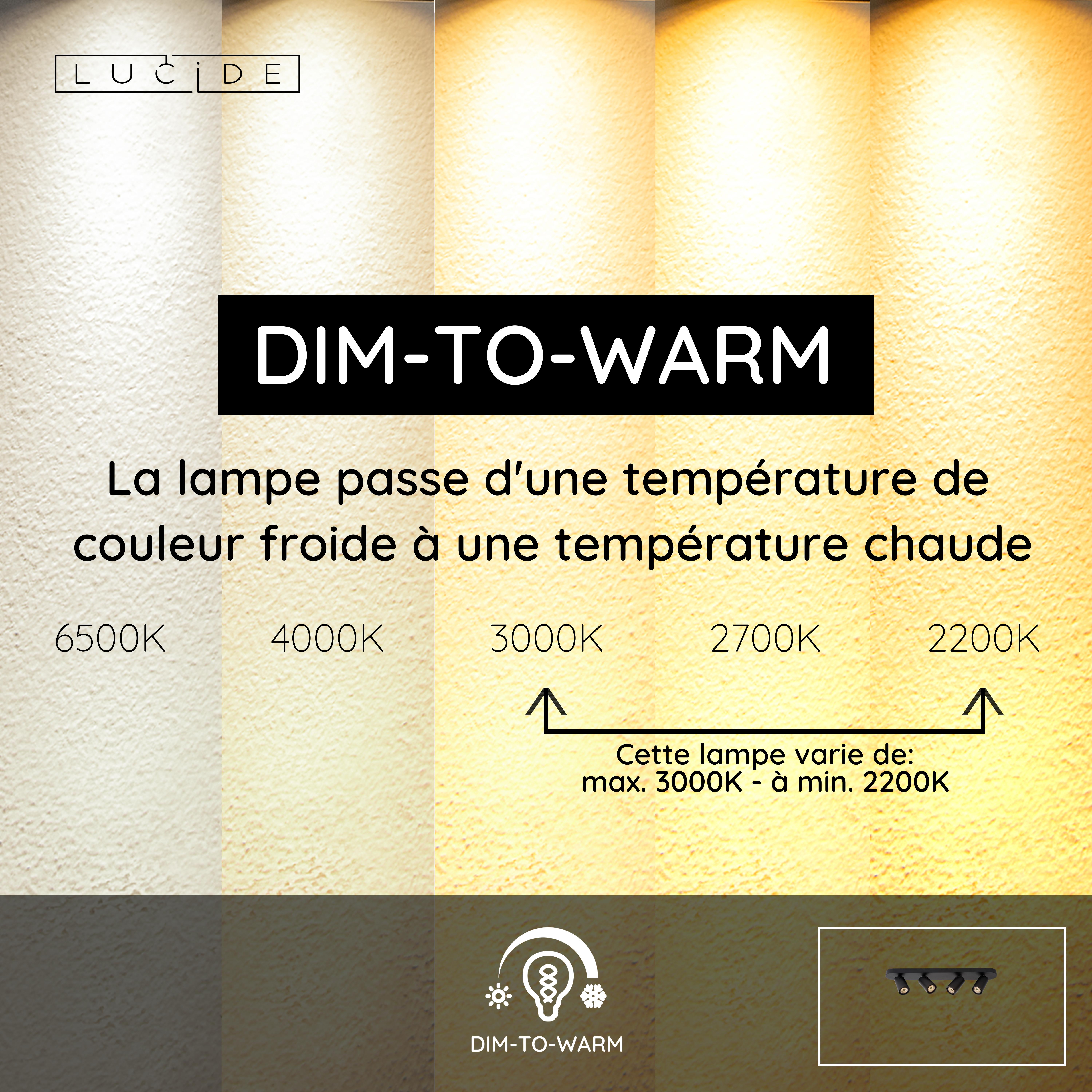 - Dim to warm, dimmable vers une couleur plus chaude (2200K)