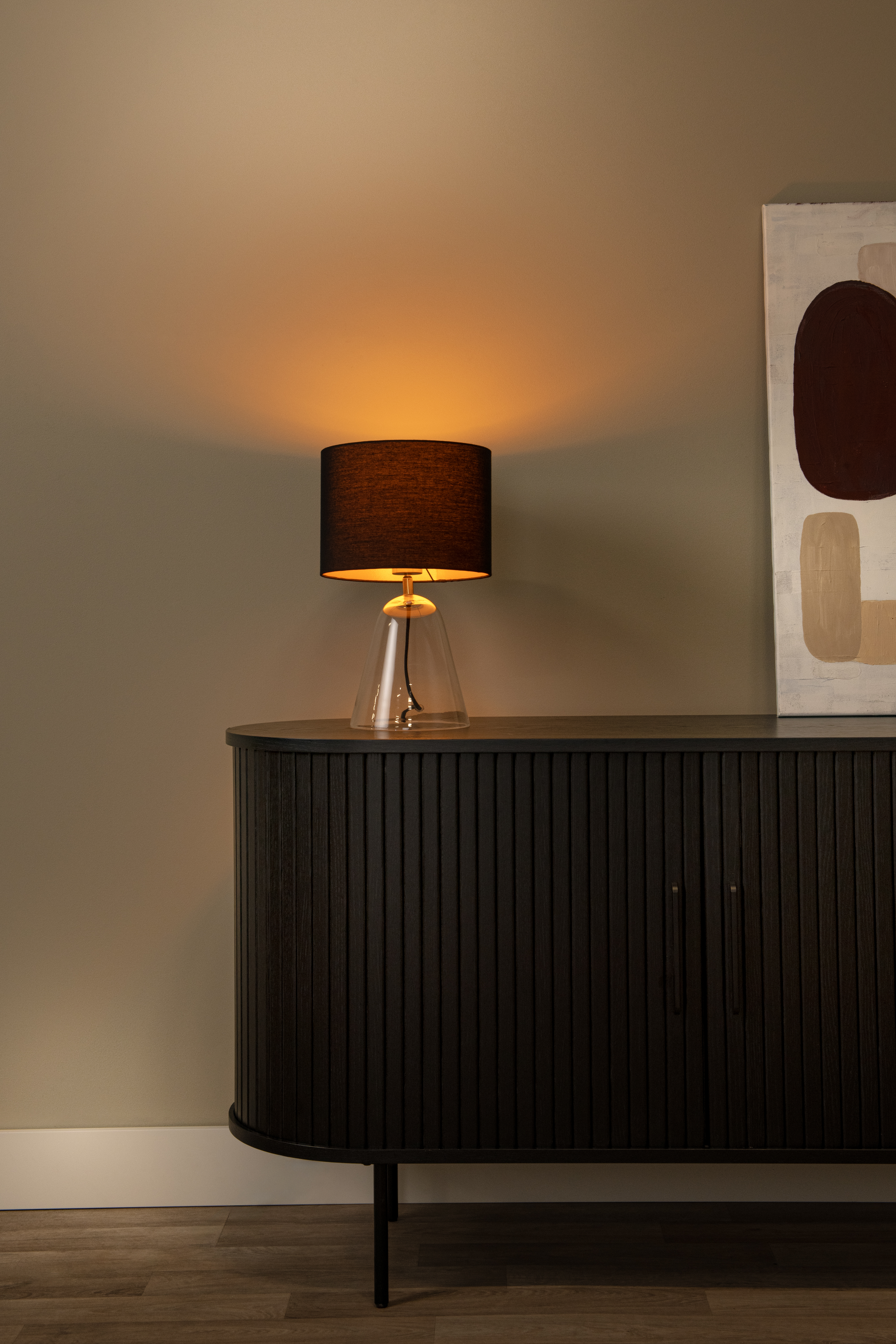 Les matériaux naturels apportent une touche d’élégance incomparable à votre intérieur. Campana le prouve bien. Avec son socle en verre transparent de haute qualité et un câble textile intégré, cette lampe d’ambiance attire tous les regards. Contrôlez-la facilement via l’interrupteur sur le cordon. Son pied en verre conique et son abat-jour rond et inclinable sont à la fois élégants et gracieux, ce qui permet à Campana de s’adapter parfaitement à tout intérieur. Allez-vous succomber à son charme ?