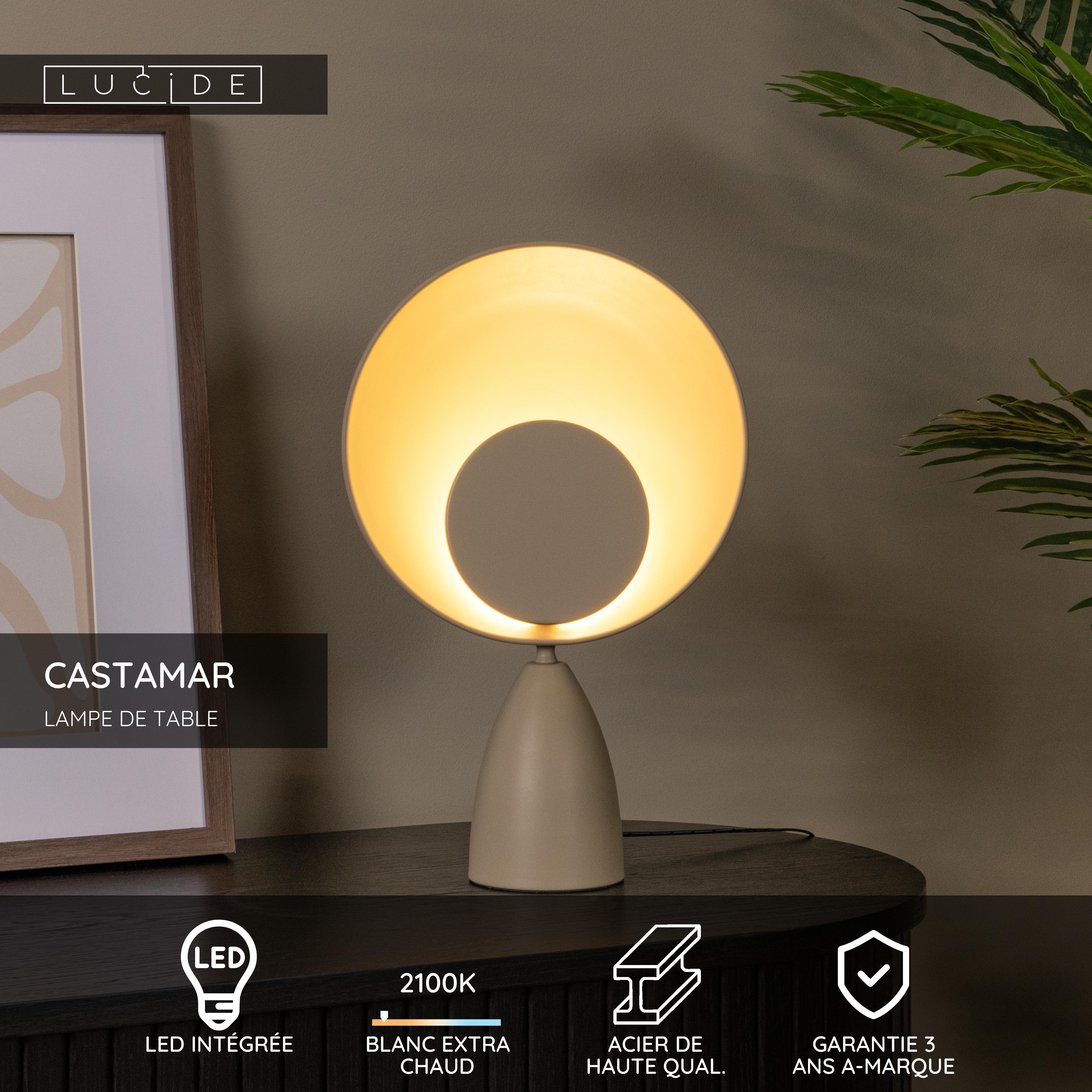 Lucide CASTAMAR - Lampe de table - Ø 25,5 cm - LED - 1x8W 2100K - Taupe