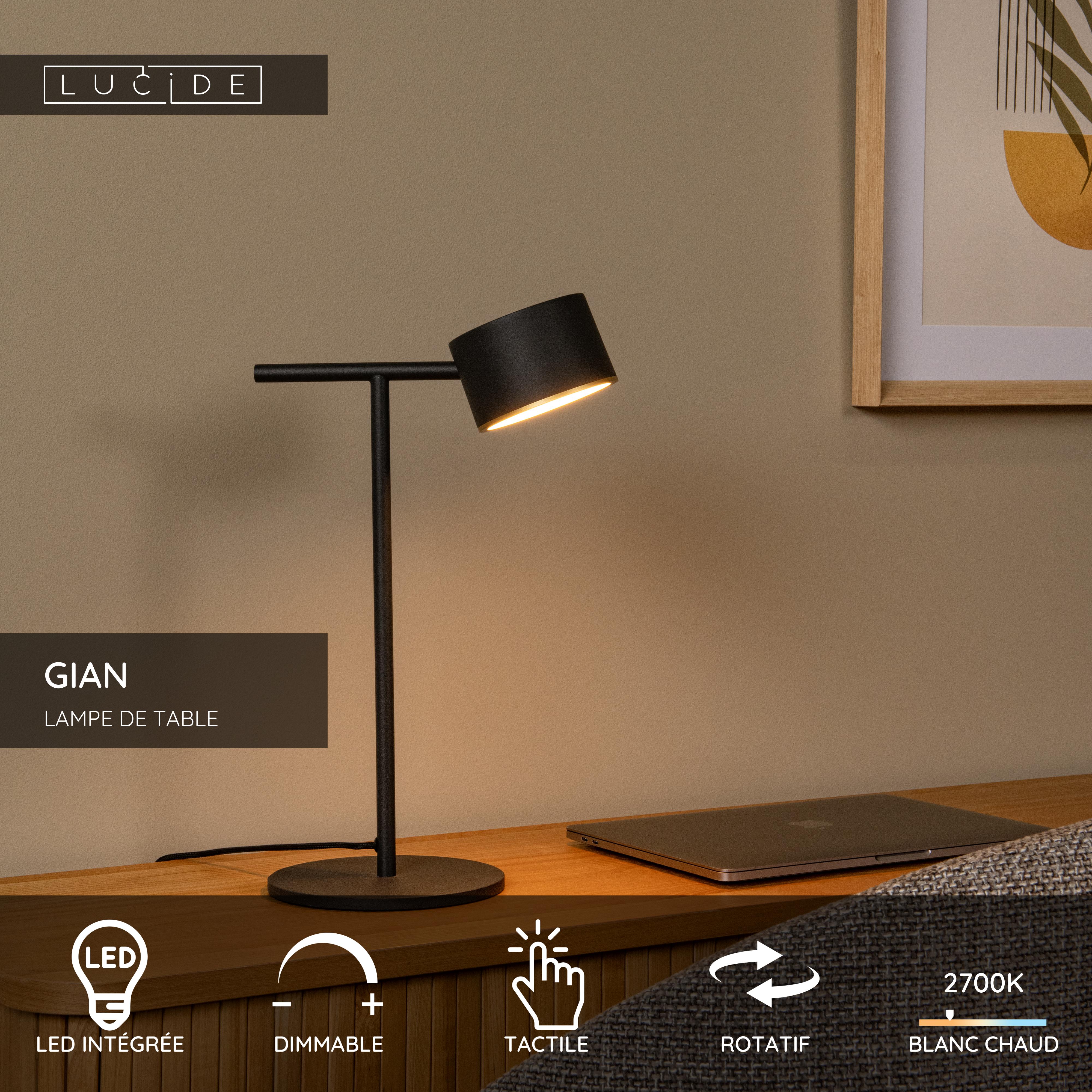 Lucide GIAN - Lampe de table - LED Dim. - 1x9W 2700K - Noir