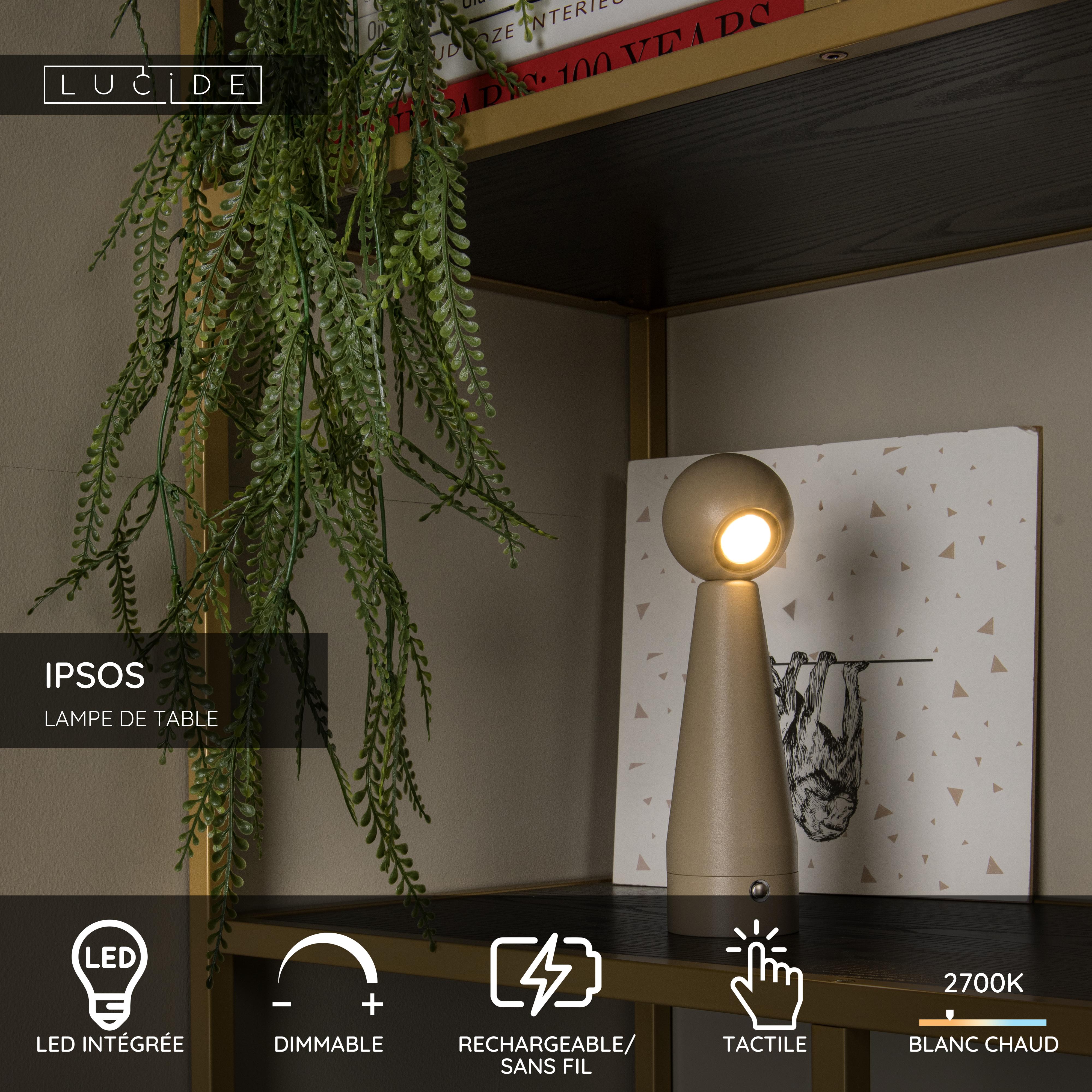 Lucide IPSOS - Lampe de table Rechargeable - Batterie/Piles - LED Dim. - 1x3W 2700K - Taupe