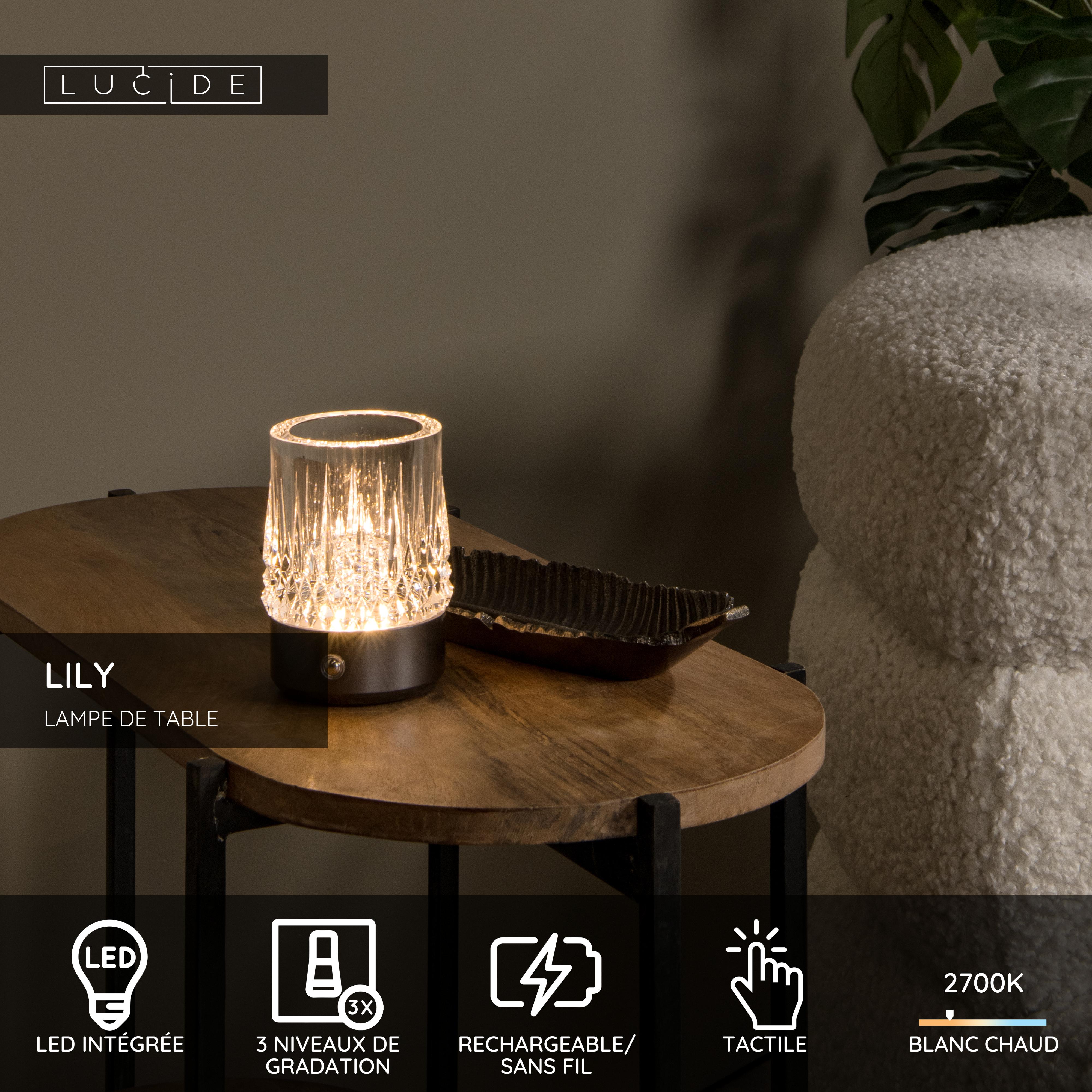 Lucide LILY - Lampe de table Rechargeable - Batterie/Piles - Ø 8 cm - LED 3 StepDim - 1x3W 2700K/3000K - Canon Fusil - Ensemble de 3