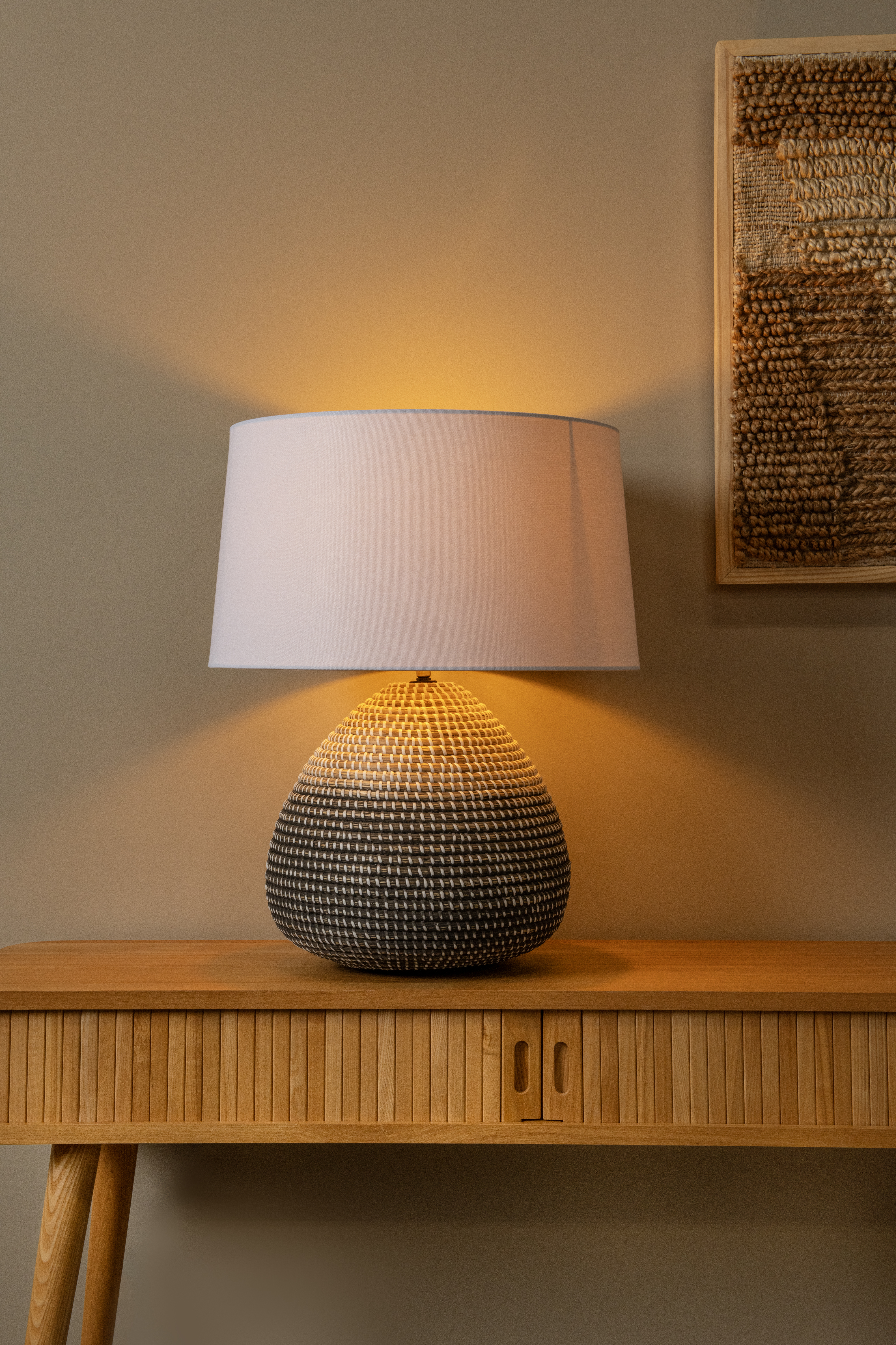 Si vous appréciez les matériaux doux et naturels et que vous privilégiez les produits durables, la lampe Maduka est faite pour vous. Cette lampe de table présente un abat-jour rond en lin et repose sur une base conique en jonc de mer de première qualité. Avec une hauteur de 54 centimètres, Maduka mérite une place privilégiée dans votre salon. L'interrupteur pratique situé sur le cordon permet d'allumer et d'éteindre rapidement la lampe crépusculaire. Maduka répond toujours à vos besoins à tout moment.