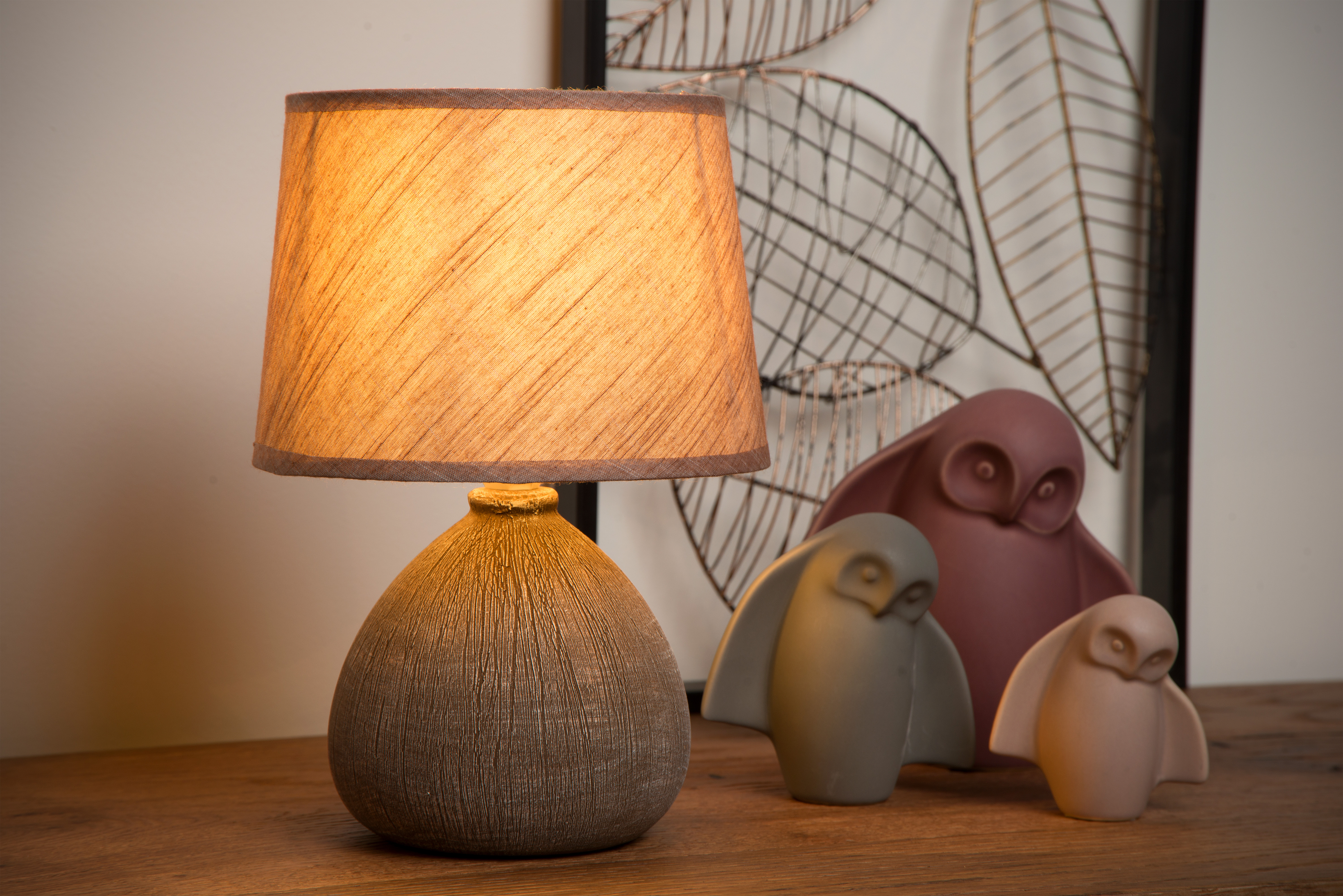 Lucide RAMZI - Lampe de table - Ø 18 cm - 1xE14 - Brun