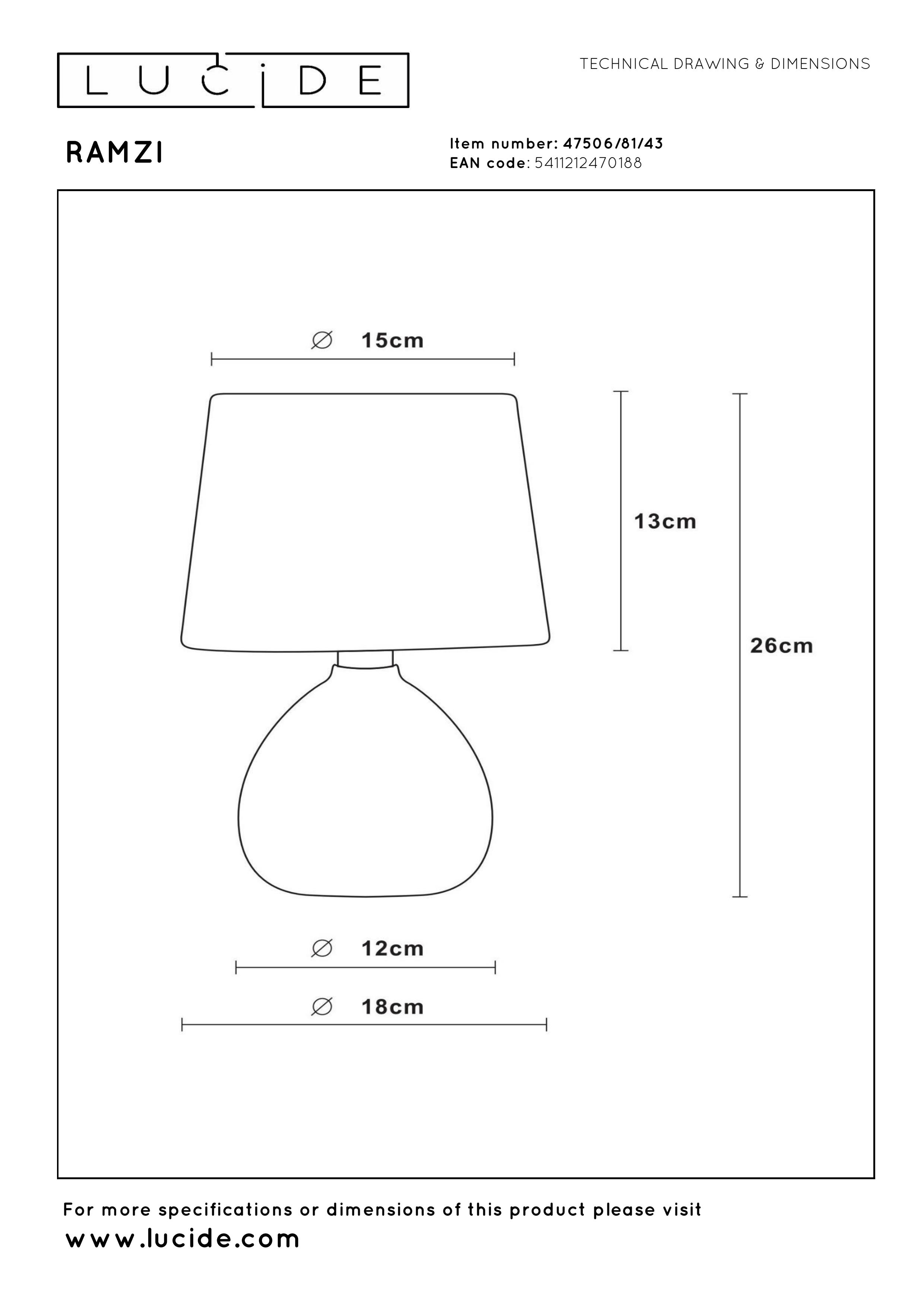 Des tons apaisants, des matières naturelles et une forme élégante. Vous pourrez retrouver toutes ces caractéristiques dans cette lampe de table compacte. Avec une hauteur de 26 centimètres, Ramzi, c'est ainsi que cette lampe se nomme, saura trouver sa place sur n'importe quelle table. Comme un éclairage d'ambiance lorsque vous regardez la télévision ou comme lampe de lecture pour votre livre le soir : la lumière est diffusée uniformément vers le haut et vers le bas. Vous pourrez profiter d'un design rustique en céramique de haute qualité. Vous pourrez allumer et éteindre Ramzi avec l'interrupteur sur le cordon. Disponible en différentes couleurs.