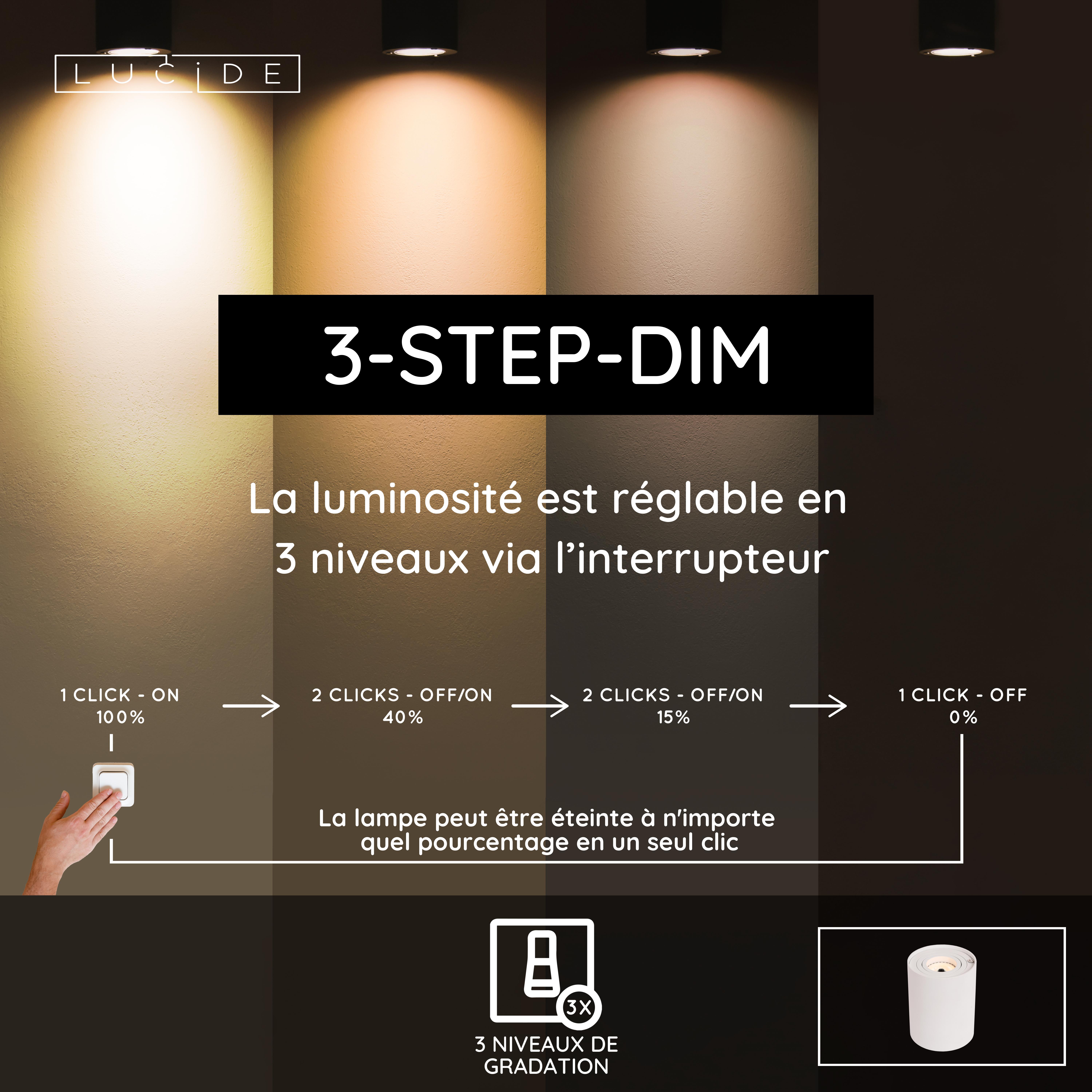Lucide TUBE - Lampe de table - Ø 9,6 cm - LED 3 StepDim - GU10 - 1x5W 2700K - Blanc