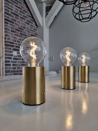Lucide VIVO - Lampe de table Rechargeable - Batterie/Piles - Ø 8 cm - LED Dim. - E27 - 1x1W 2700K - Or Mat / Laiton
