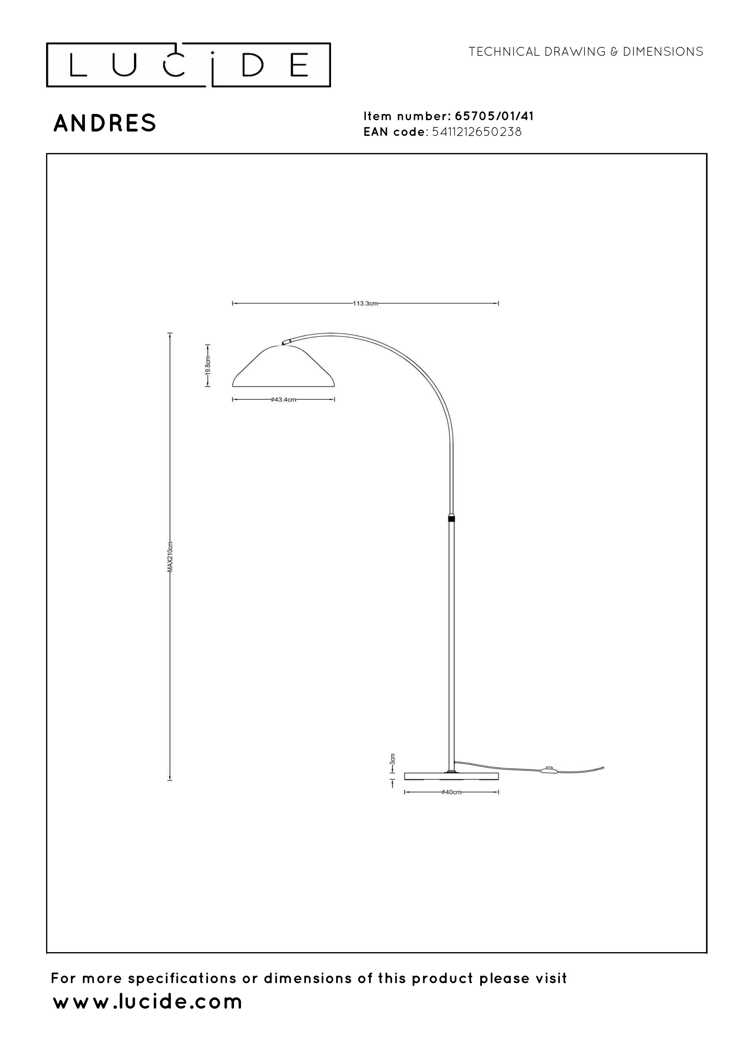 - Consommation énergétique: 1x40W / 230V / Sans intensité variable (Ampoule non incluse)