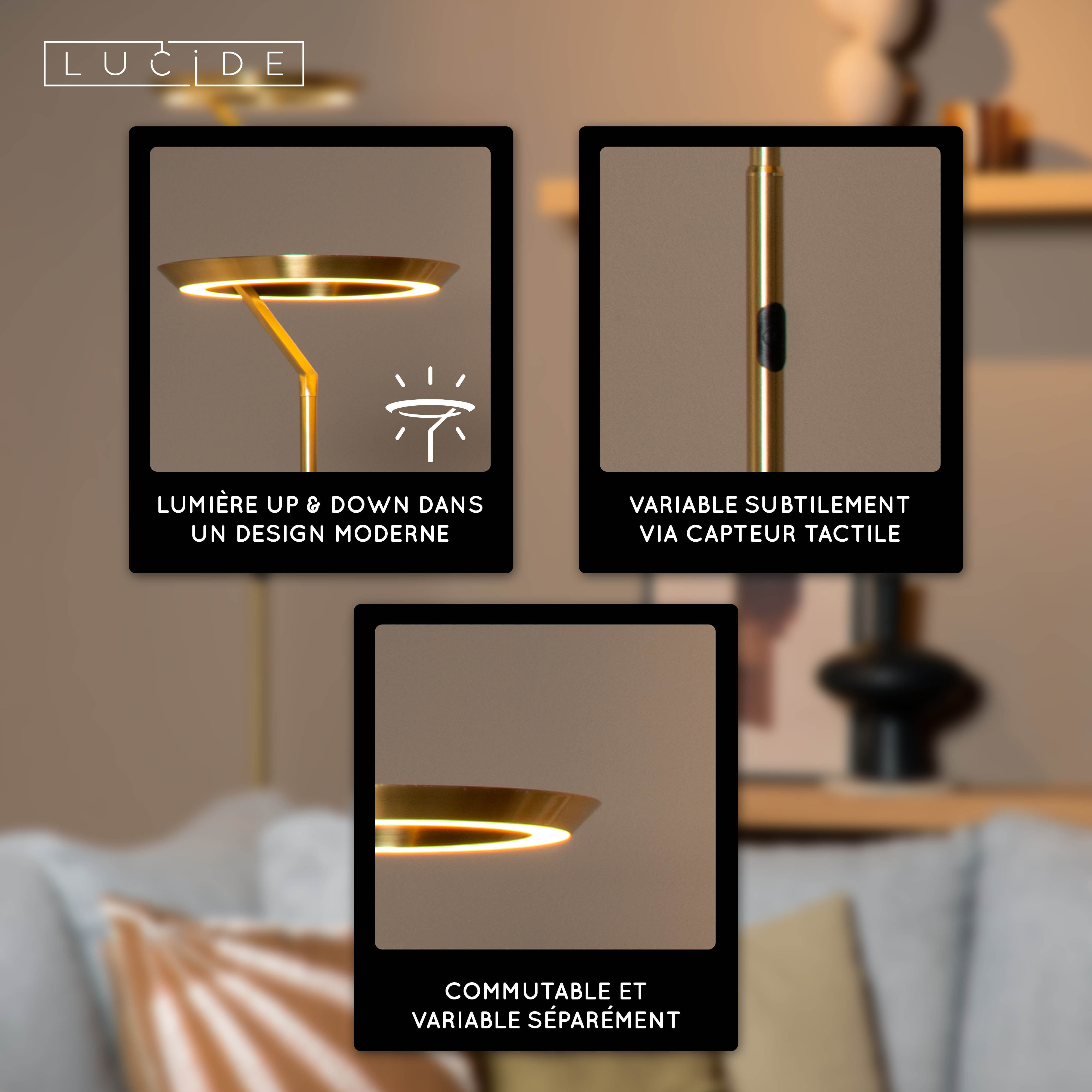 Lucide CELESTE - Lampadaire - Ø 28 cm - LED Dim. - 1x21W 2700K - Or Mat / Laiton