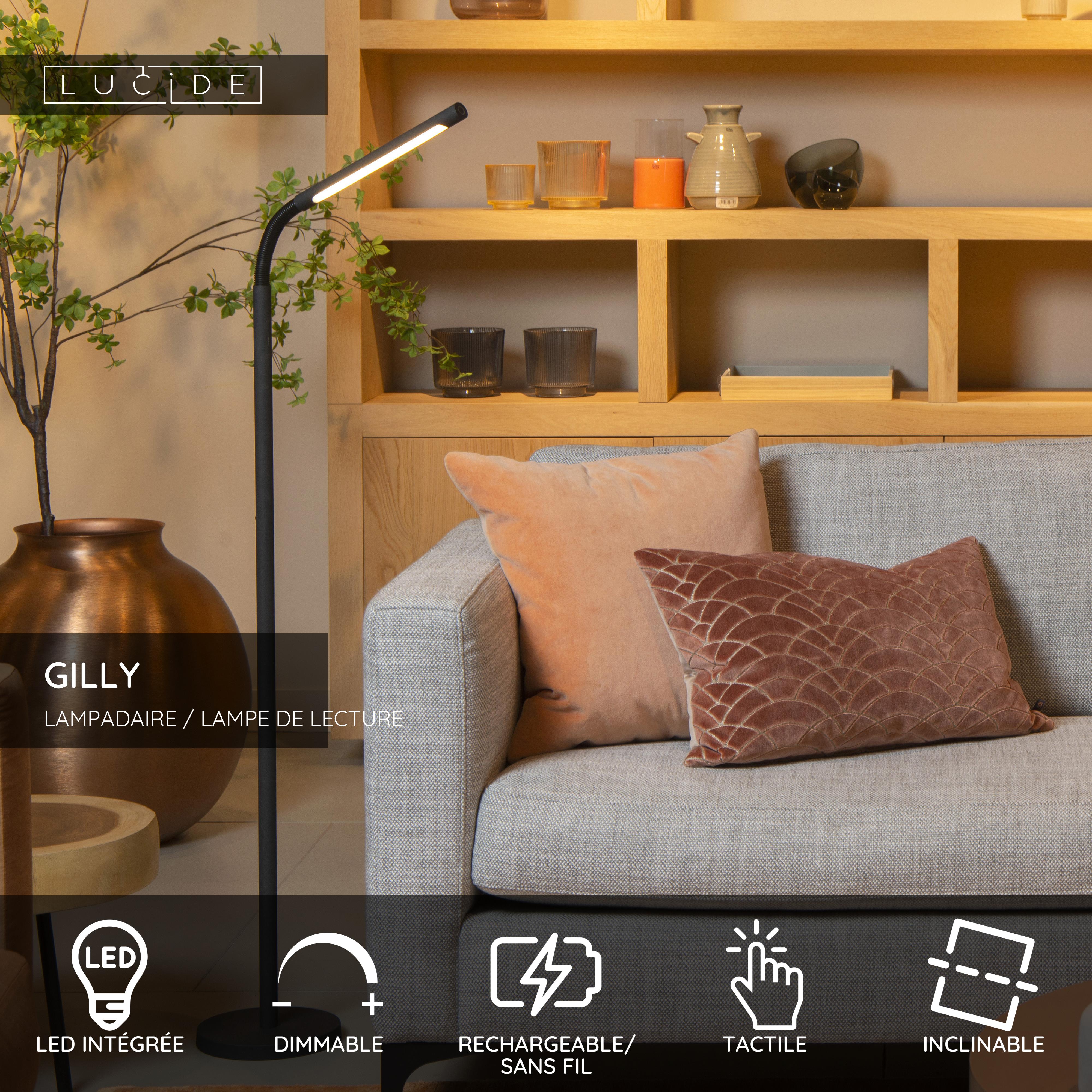 Lucide GILLY - Lampadaire / lampe de lecture Rechargeable - Batterie/Piles - LED Dim. - 1x6W 2700K - Noir