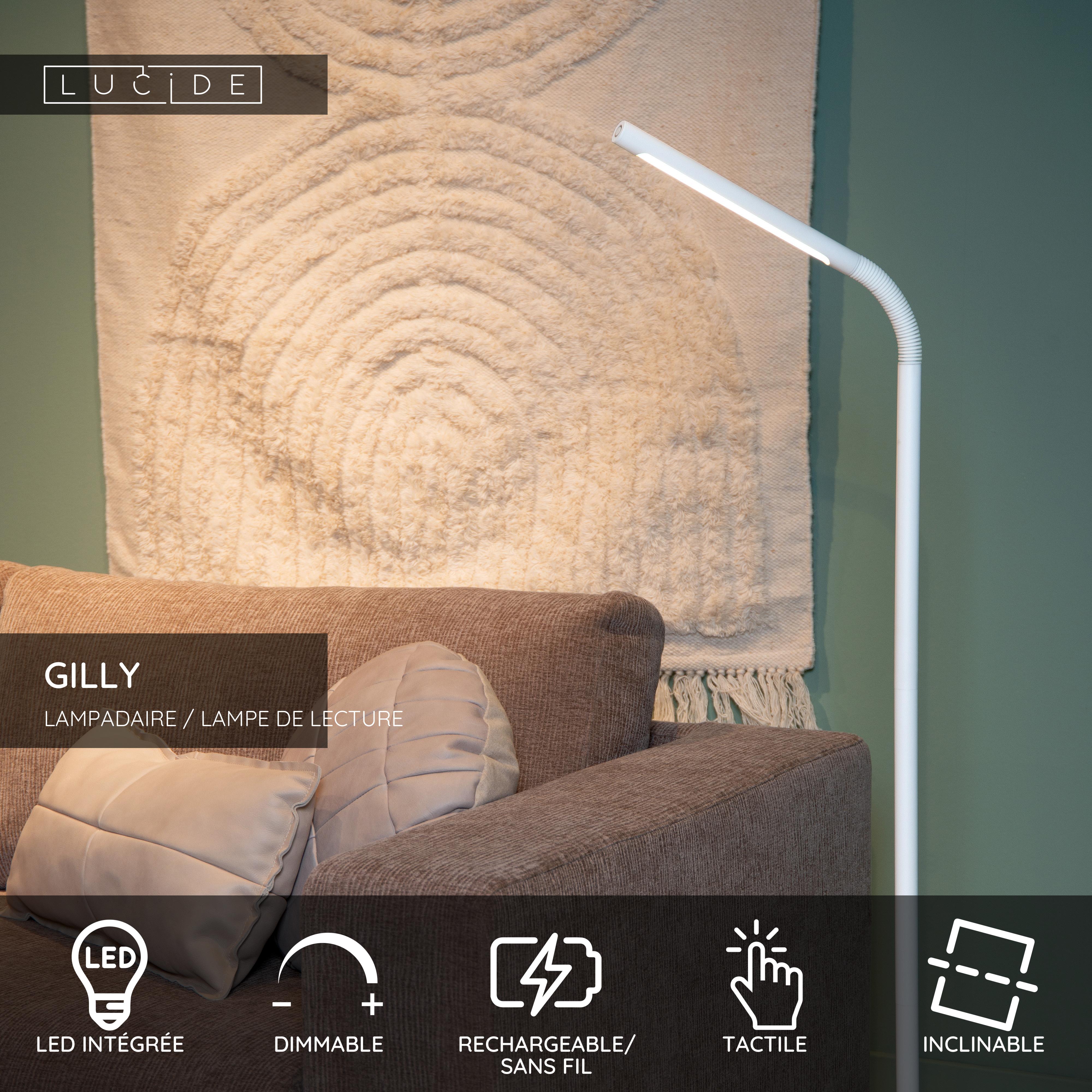 Lucide GILLY - Lampadaire / lampe de lecture Rechargeable - Batterie/Piles - LED Dim. - 1x6W 2700K - Blanc