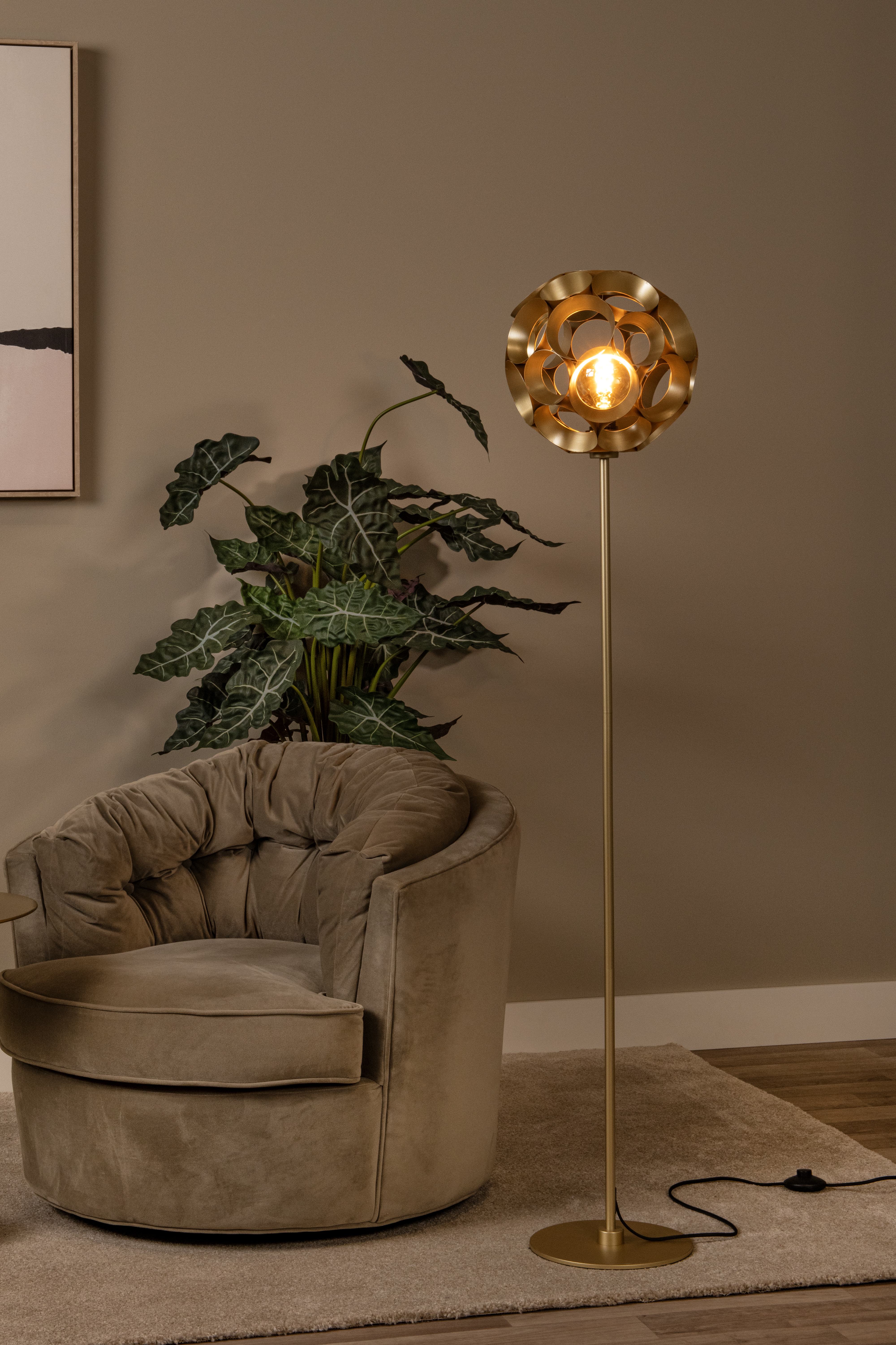Lucide HANNELORE - Lampadaire - Ø 30 cm - 1xE27 - Or Mat / Laiton