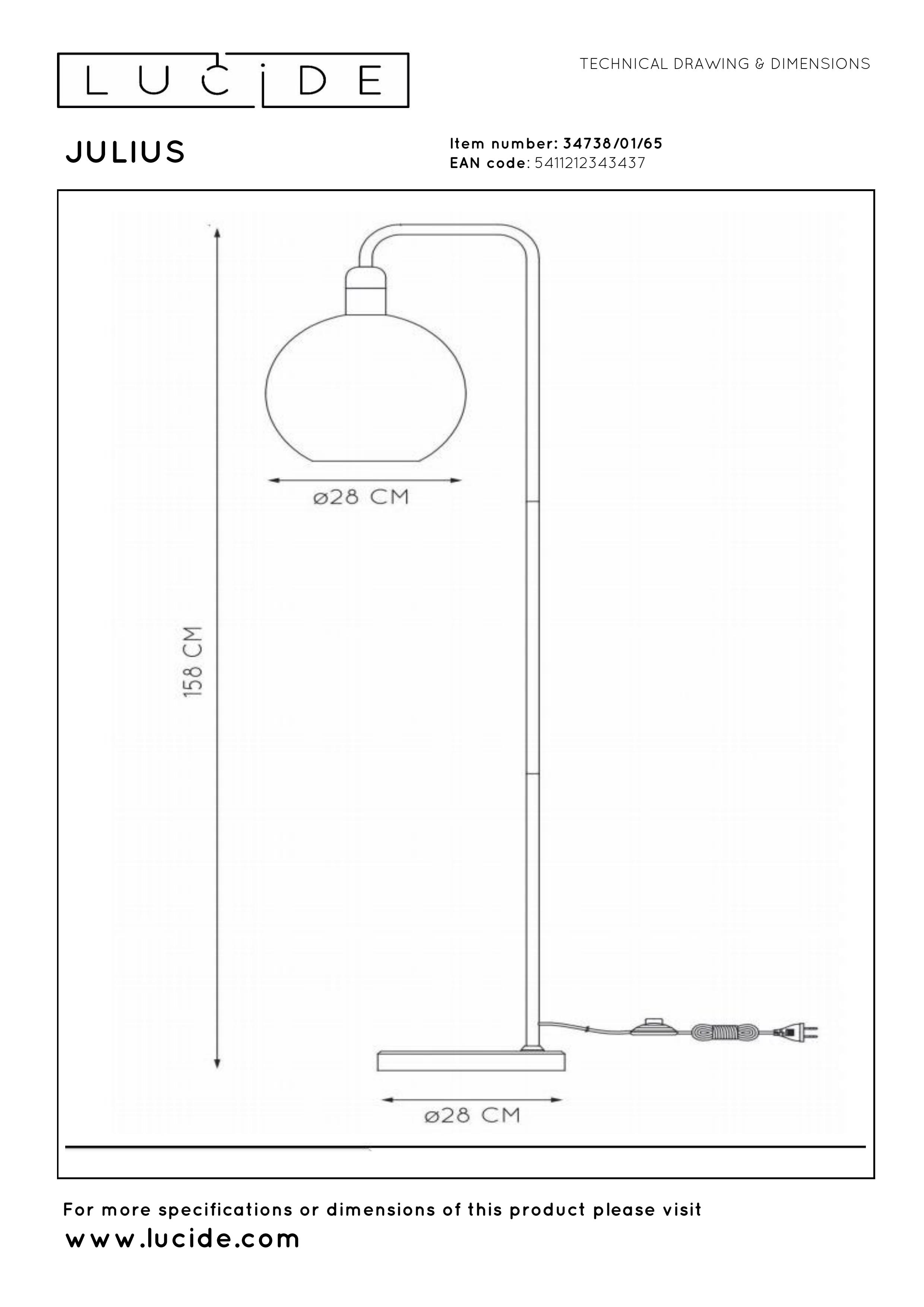 Lucide JULIUS - Lampadaire - Ø 28 cm - 1xE27 - Fumé