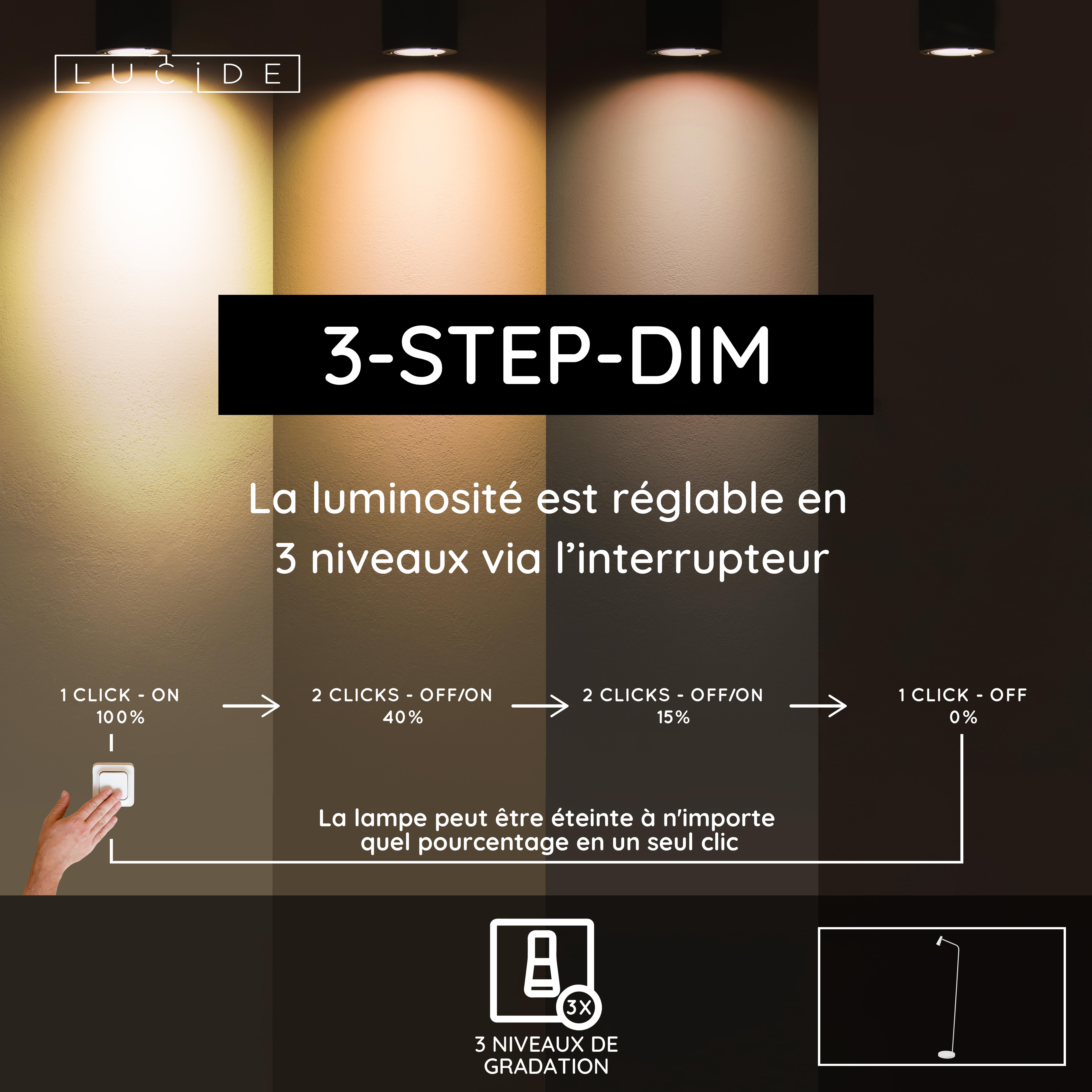 - Consommation énergétique: 1x3W / 230V / A intensité variable (Ampoule incluse)
